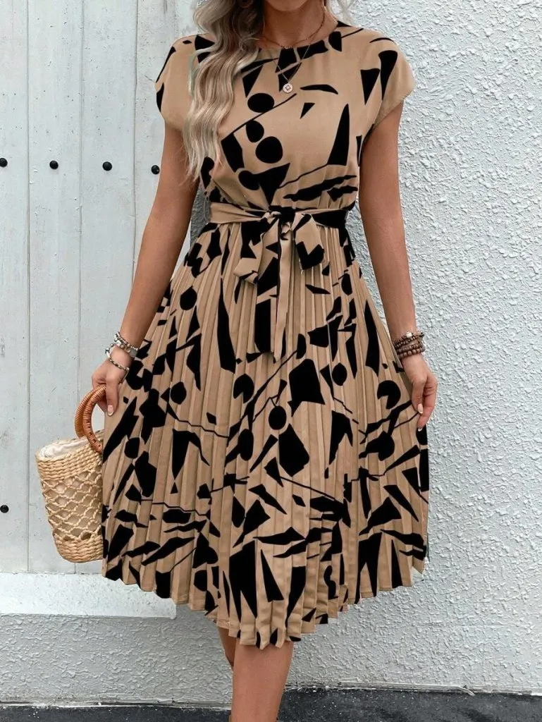 فستان نسائي قصير بكتف واحد وتفصيلة فيونكة من كريب لامع