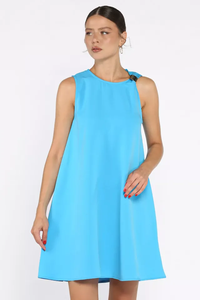 فستان نسائي قصير بكتف واحد وتفصيلة فيونكة من كريب لامع - Beyond Store