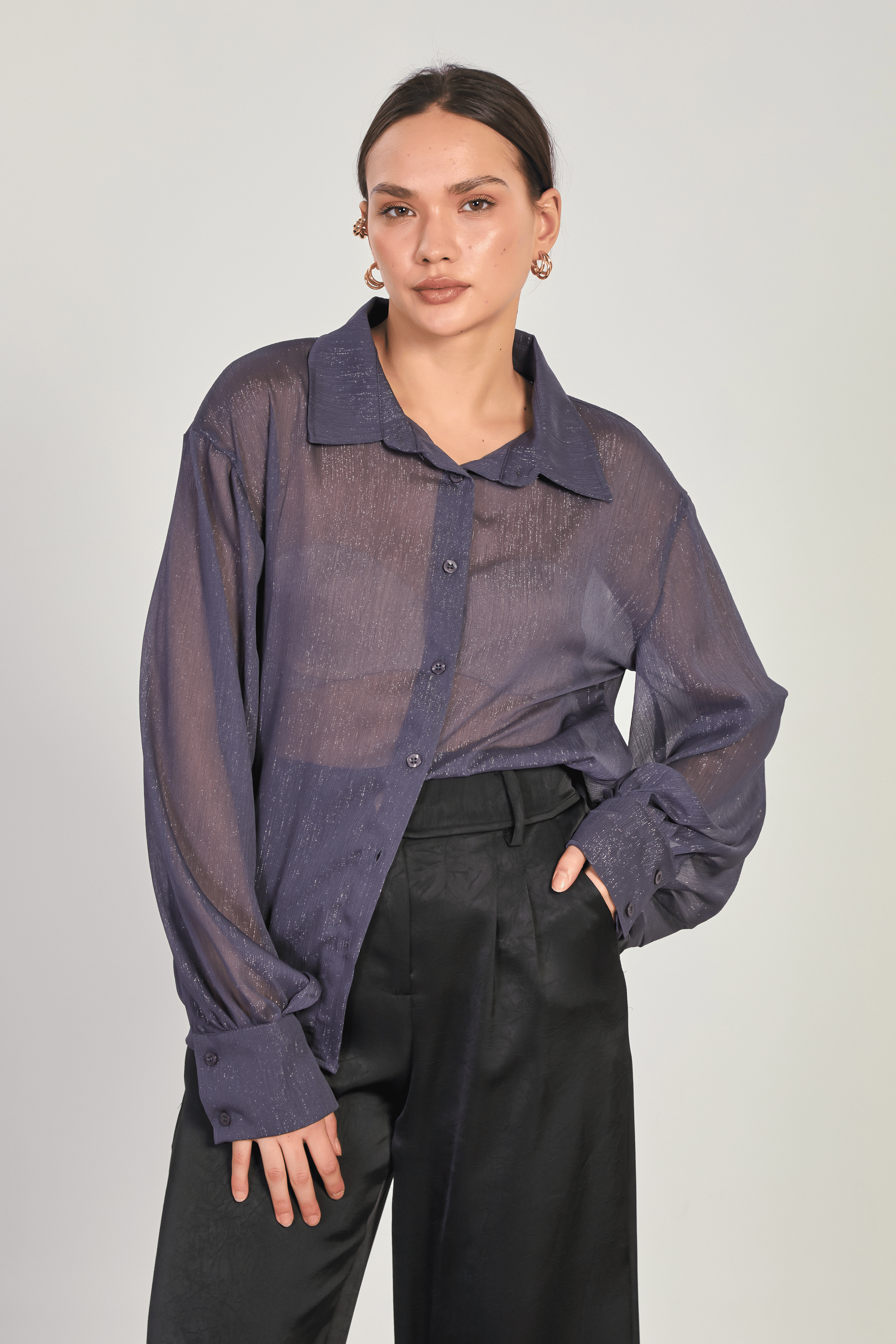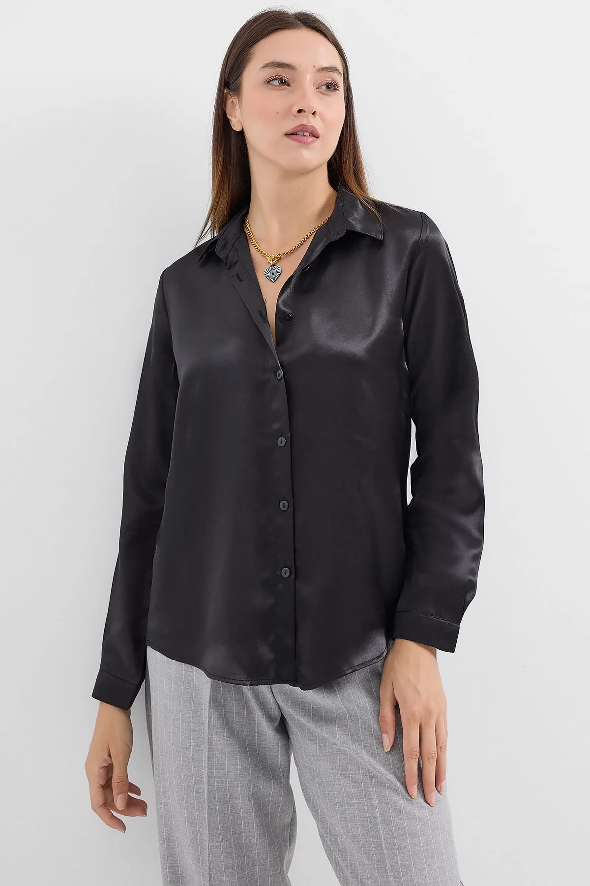 قميص نسائي مريح بلون موحد و جيوب - Beyond Store