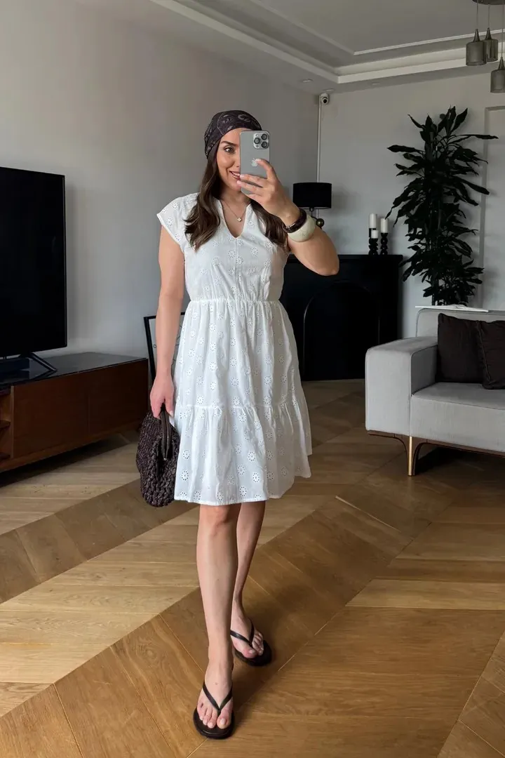 فستان مخرم بقصة حورية البحر وخصر مزموم للنساء - Beyond Store