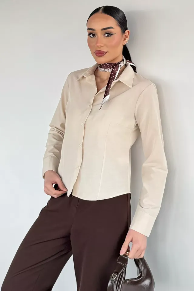 قميص يومي سادة بأكمام طويلة و تصميم مريح للنساء - Beyond Store