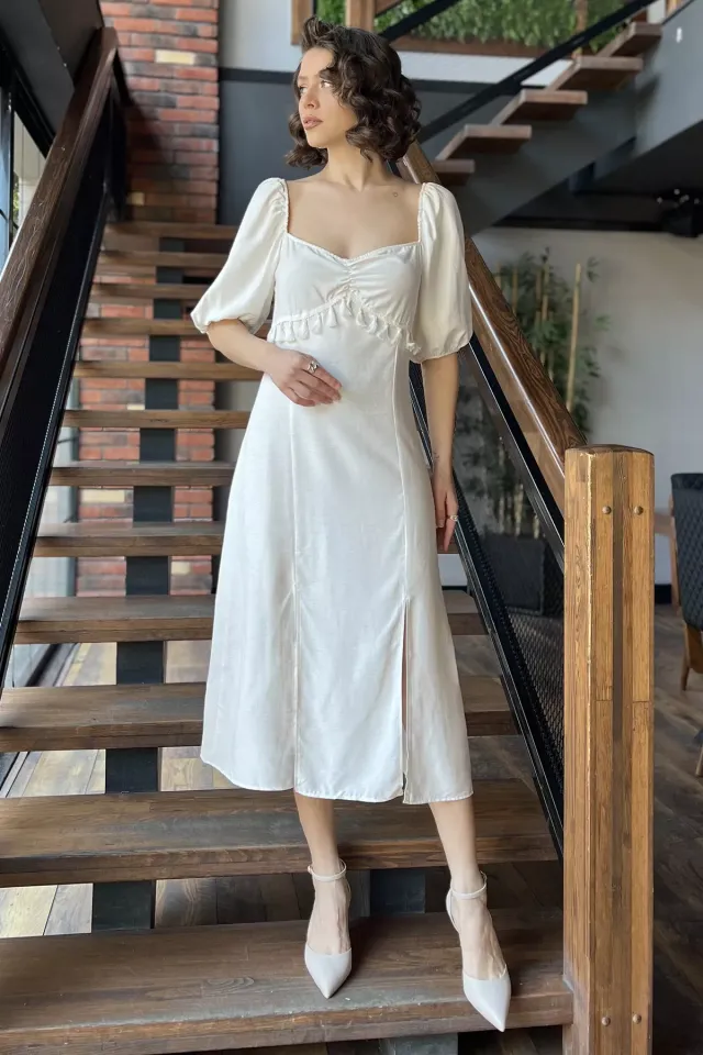 فستان ميدي مزهر بياقة V وجيوب أمامية للنساء - Beyond Store
