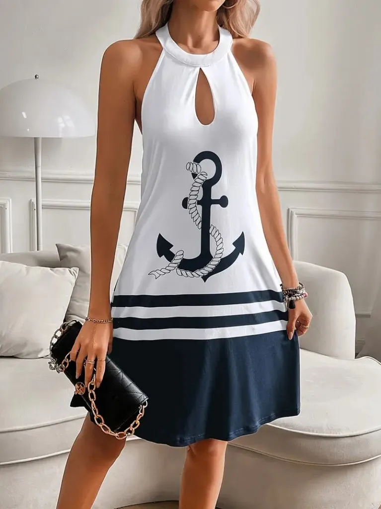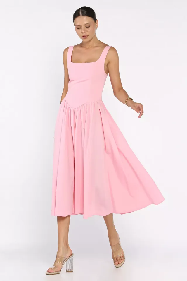 فستان ميدي مشجر بقصة كلوش بياقة دائرية وأكمام فراشة - Beyond Store