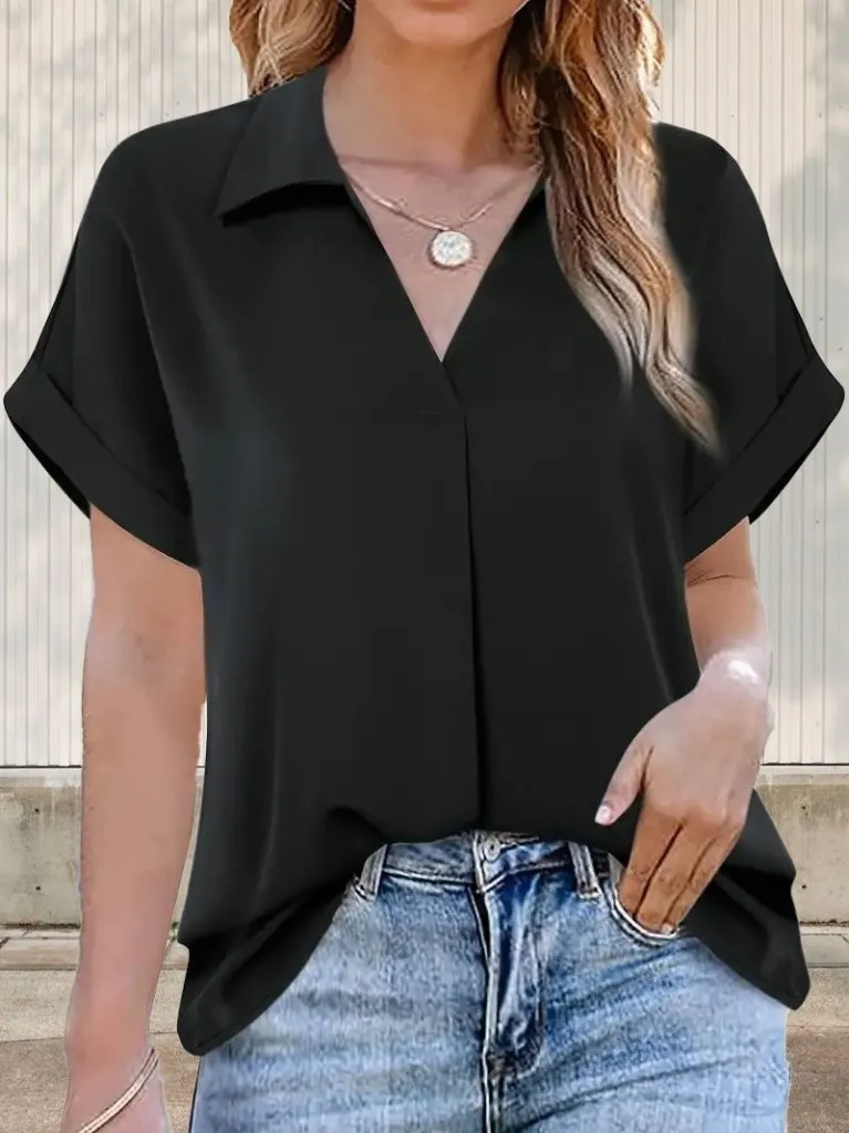 بلوزة محبوكة بياقة دائرية وأكمام قصيرة مع تفصيلة شرائط لونية. قطعة منعشة تضيف لمسة حيوية لتنسيقاتك اليومية.