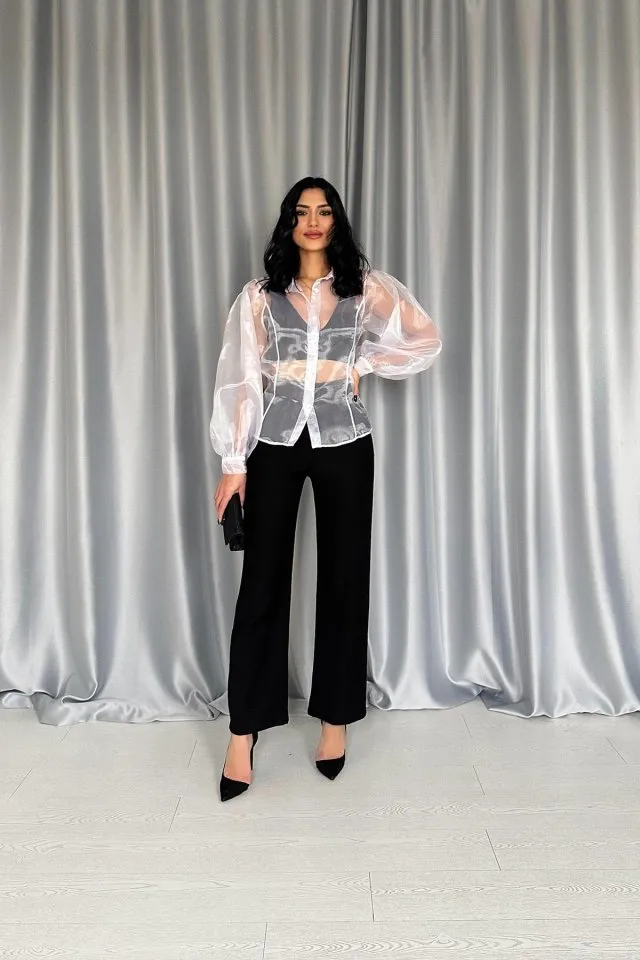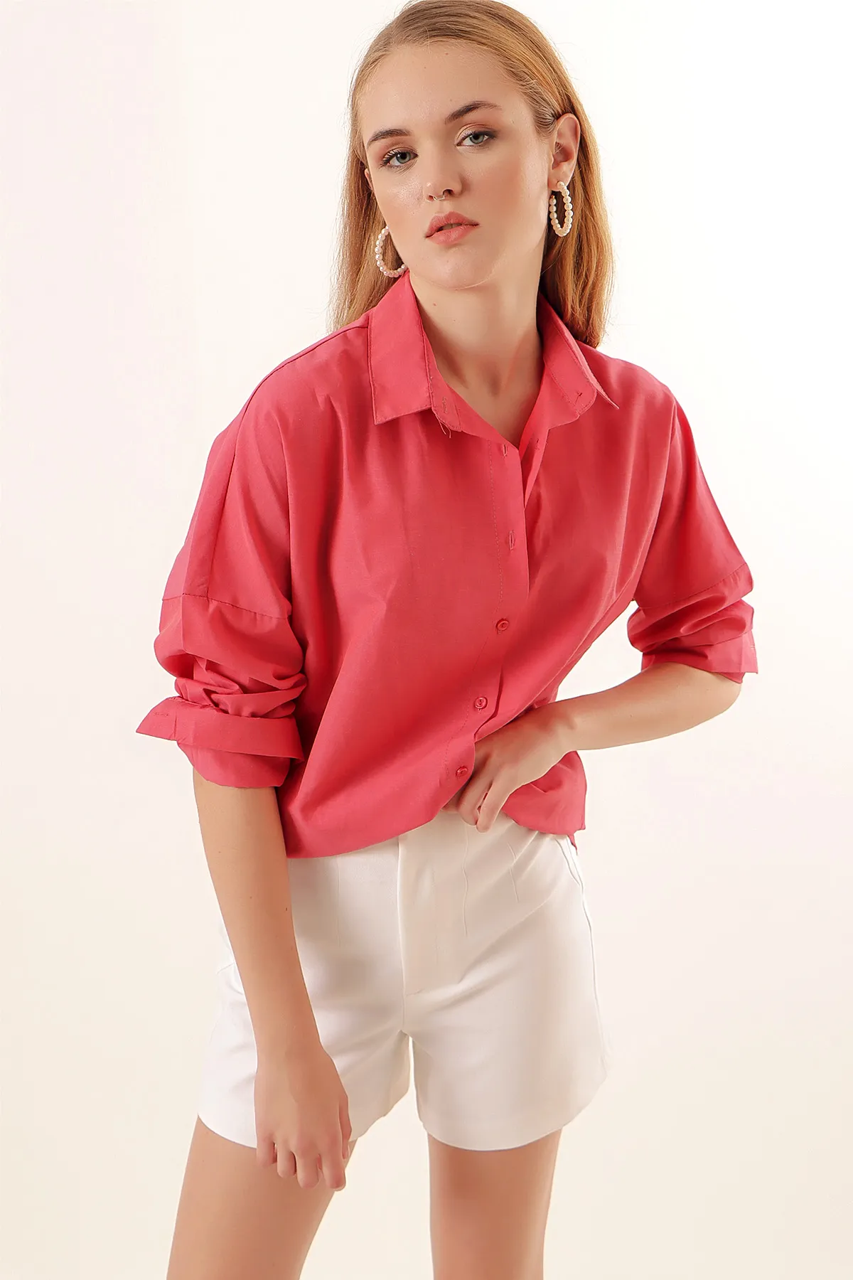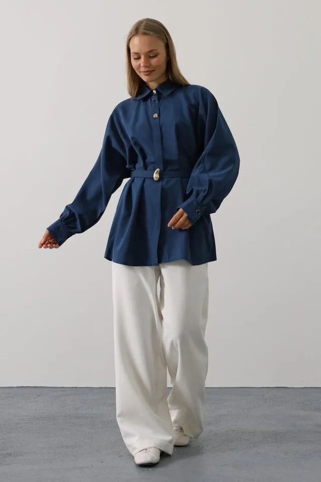 قميص ساتان نسائي بأكمام طويلة، بلون سادة، يتميز بمظهر ناعم وأنيق، مثالي للمناسبات الرسمية وغير الرسمية. مصنوع من قماش خفيف الوزن وجيد التهوية.