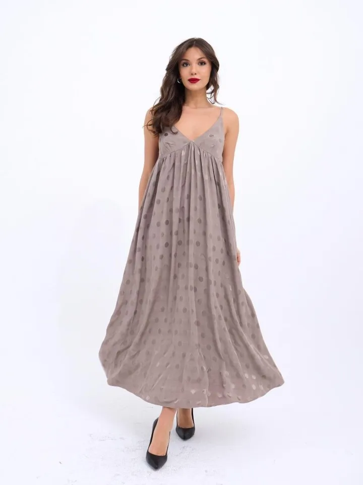 فستان ماكسي بسحاب امامي وياقة دائرية وقصة كلوش بكسرات للنساء