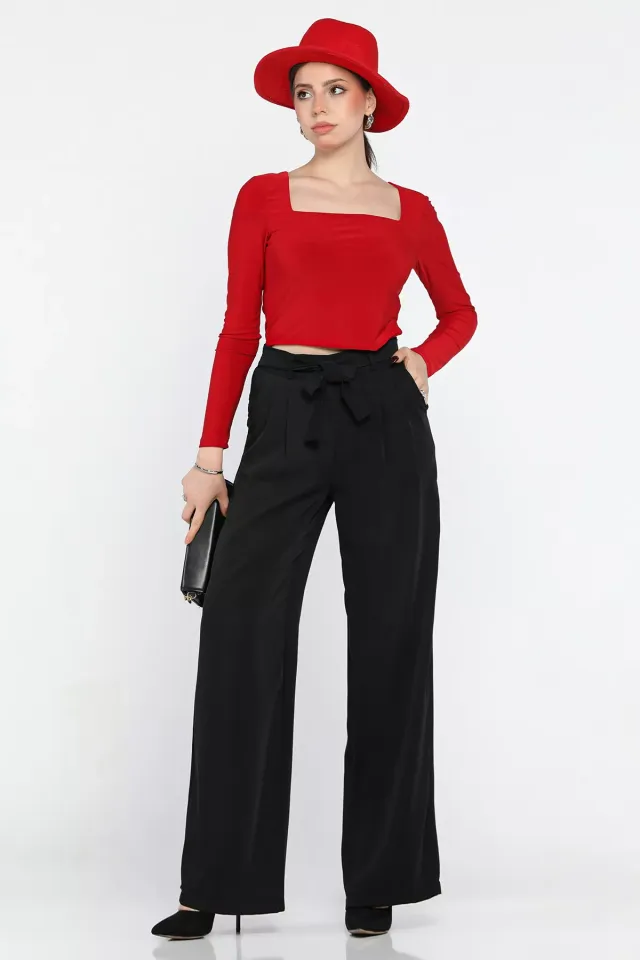 بنطال نسائي بالازو بخصر مطاطي جزئي وقصة مريحة - Beyond Store
