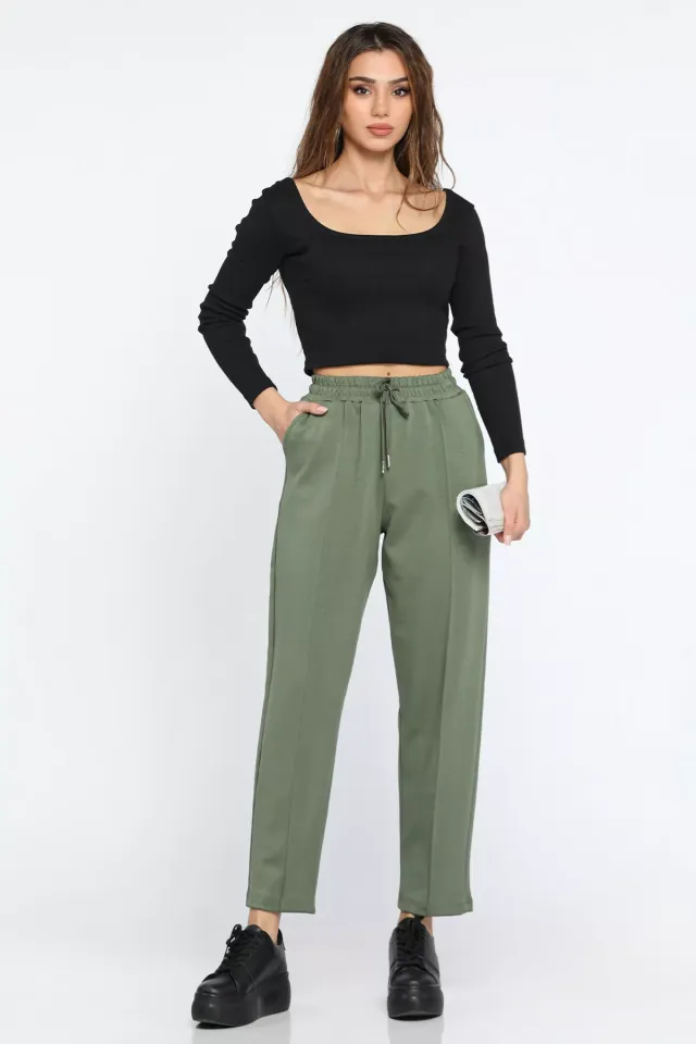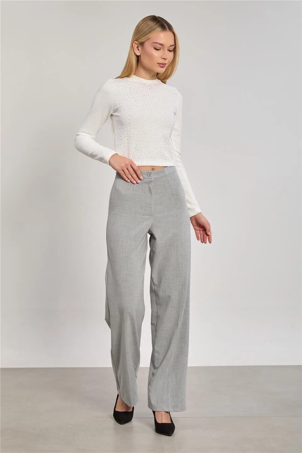 بنطال نسائي بالازو بخصر مطاطي جزئي وقصة منسدلة. مناسب للحركة اليومية والراحة طوال اليوم.