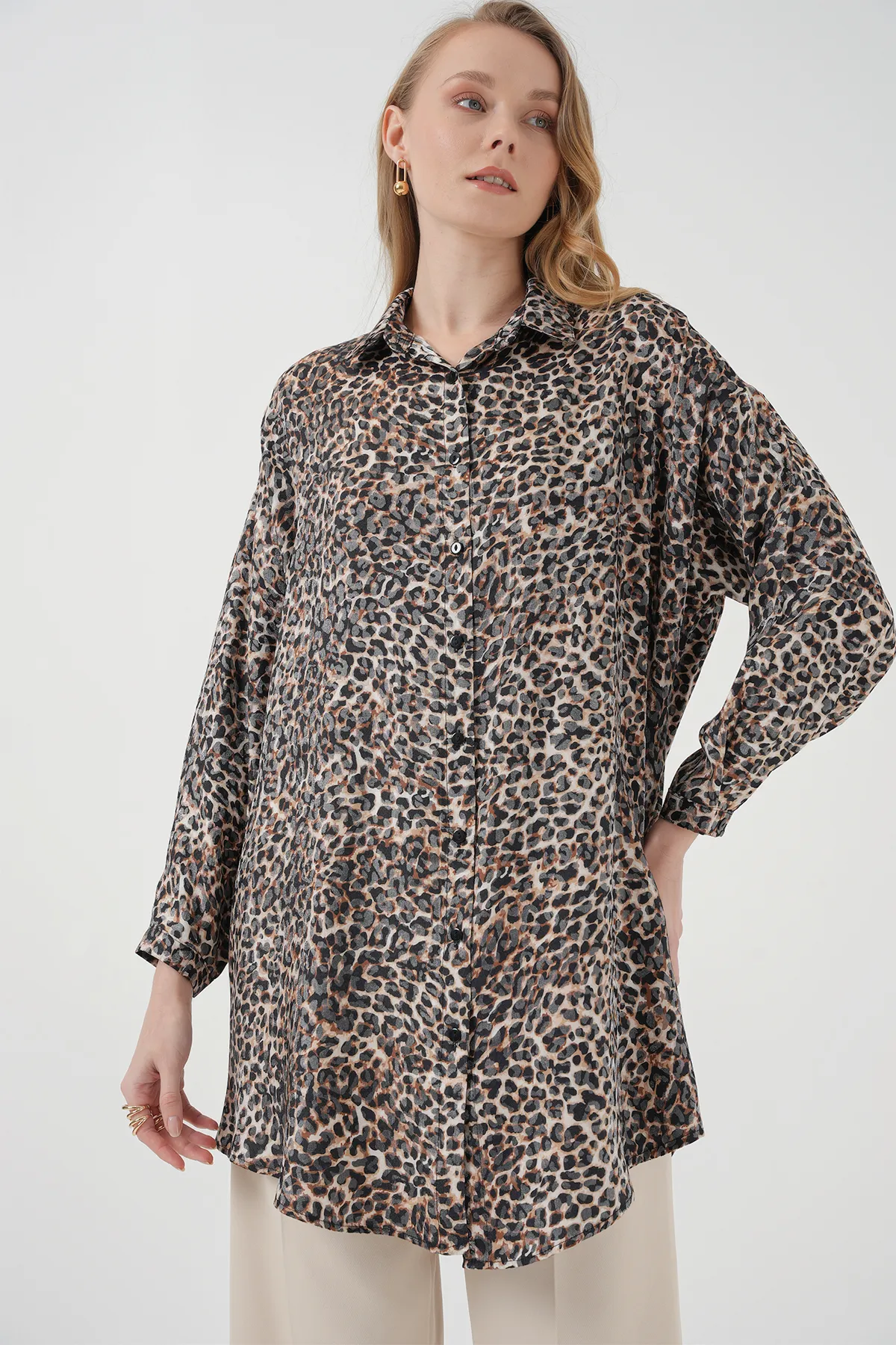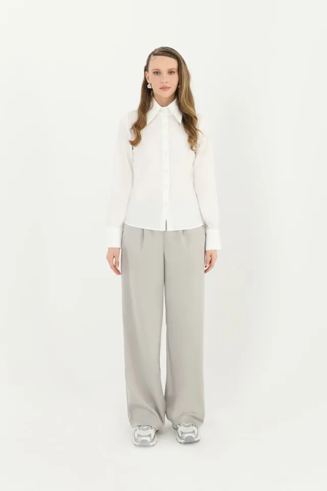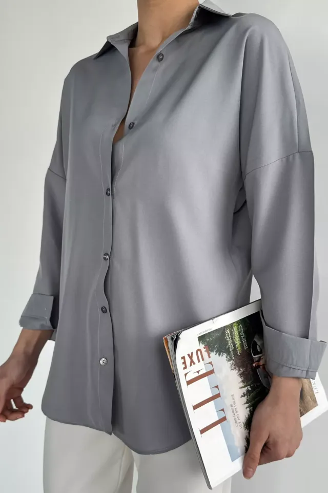 قميص نسائي ذو لون موحد بقصّة عادية وتصميم لف من الجانب، يجمع بين الأناقة والبساطة للحصول على مظهر يومي أنيق.
