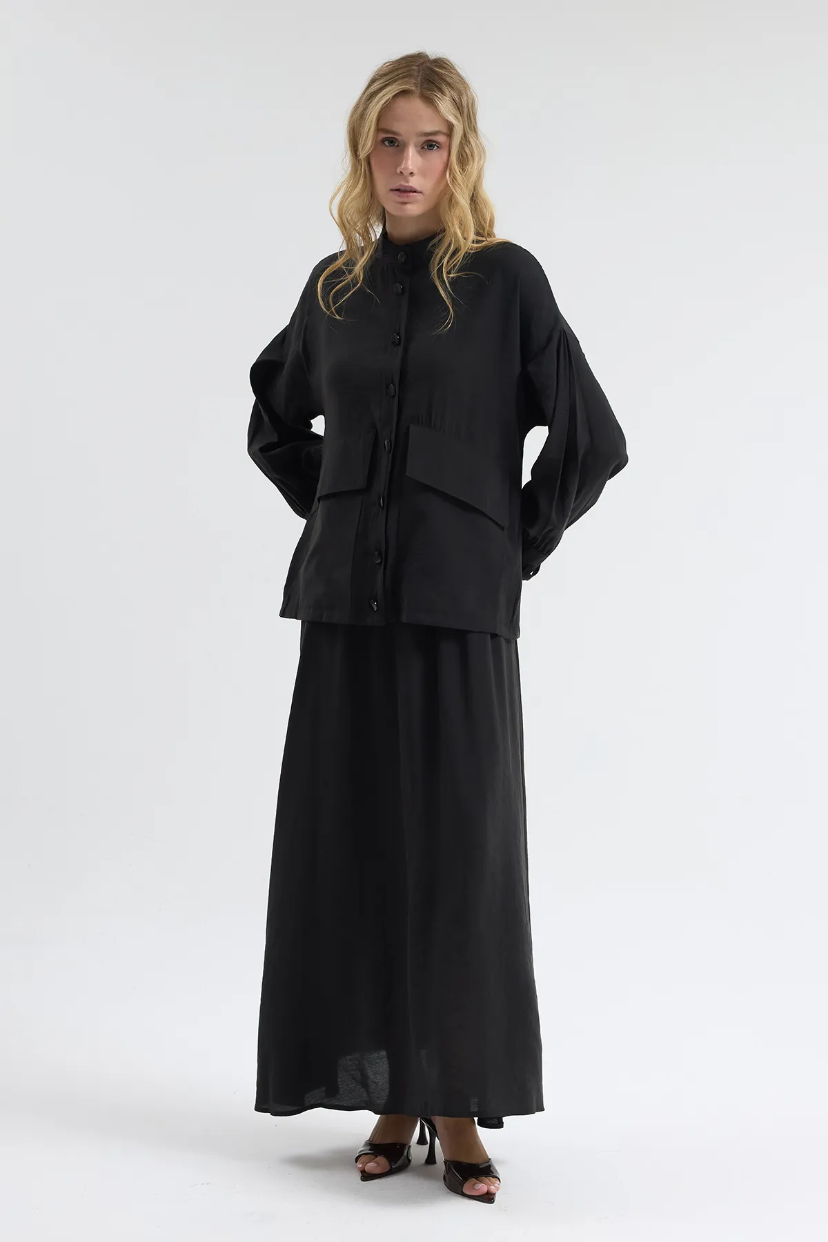 طقم نسائي مكوّن من تونيك وبنطال واسع، تصميم محتشم يوفر راحة وحركة أنيقة، مناسب للارتداء اليومي، اللقاءات الكاجوال، أو المناسبات شبه الرسمية التي تجمع بين الحشمة والأناقة.