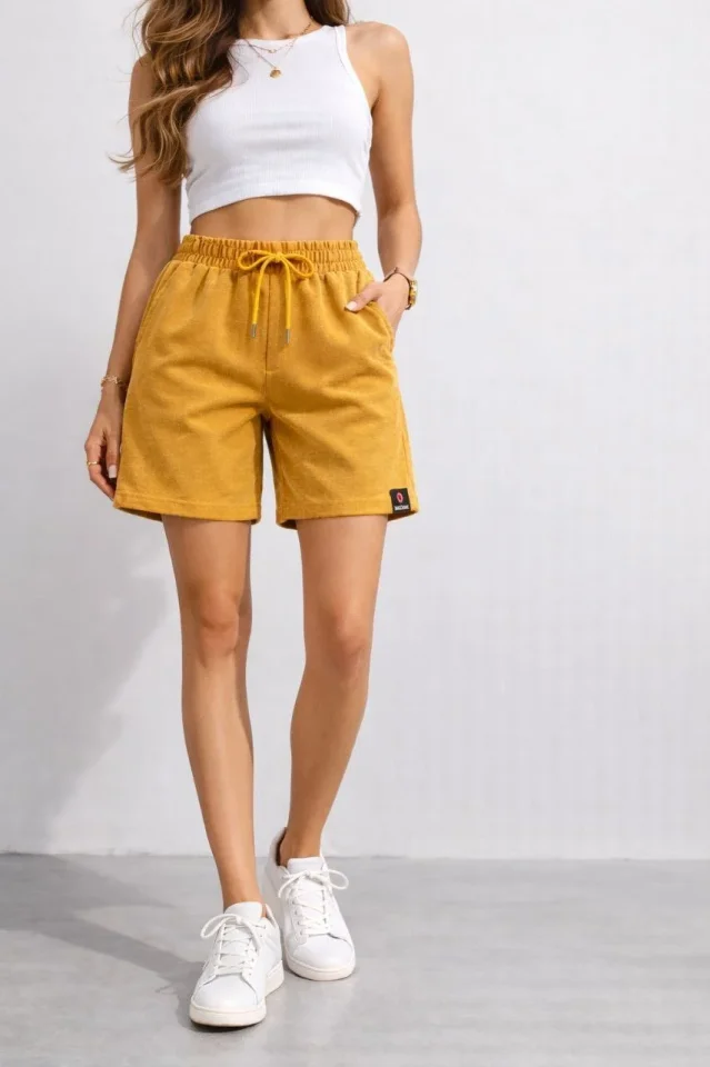 شورت كتان نسائي بخصر مطاطي وجيوب جانبية - Beyond Store