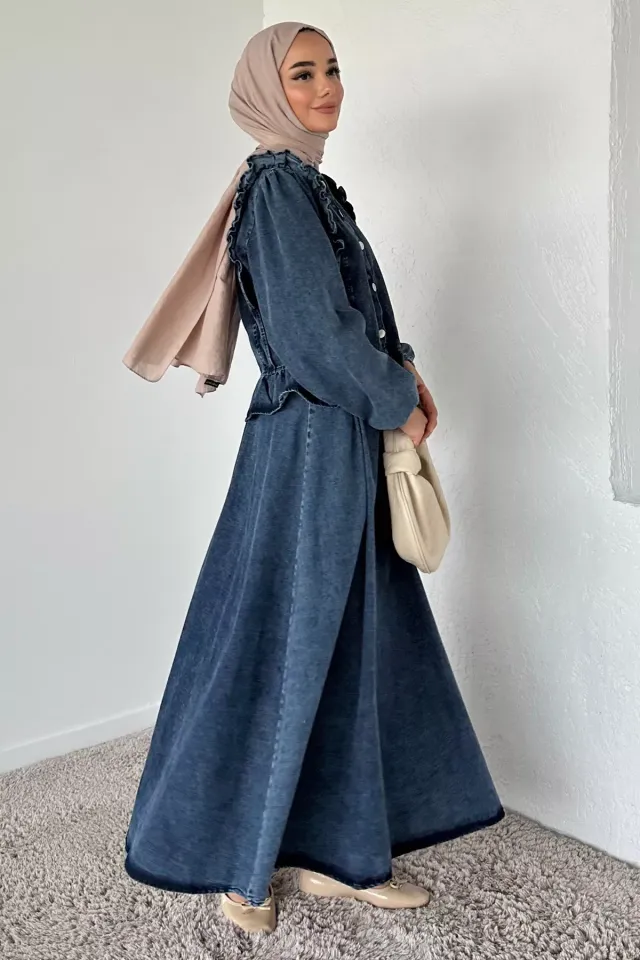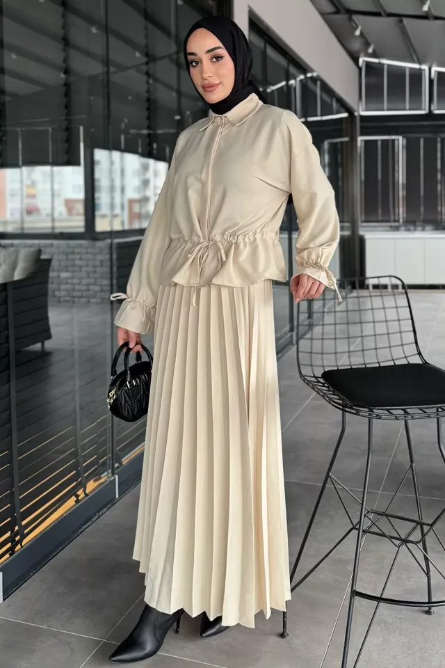 طقم تونيك وبنطال بتفصيلة وردة بارزة كبيرة على الياقة وقصة مريحة، إطلالة محتشمة وأنثوية مثالية للعيد للنساء.