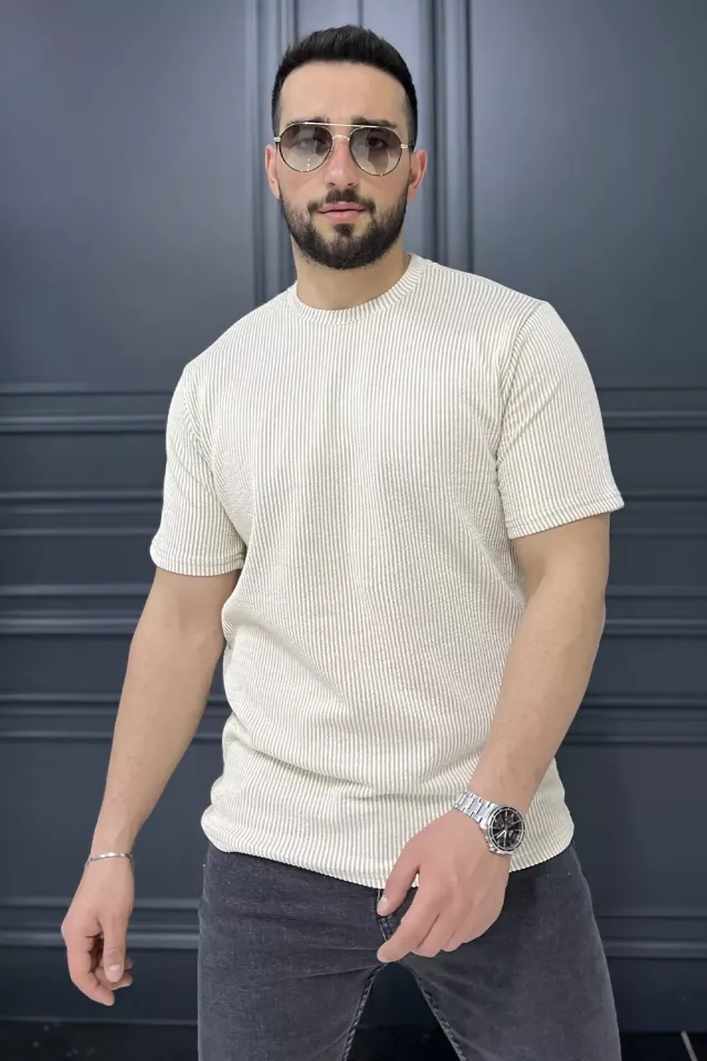 تي شيرت رجالي سادة بأكمام قصيرة وياقة دائرية - Beyond Store
