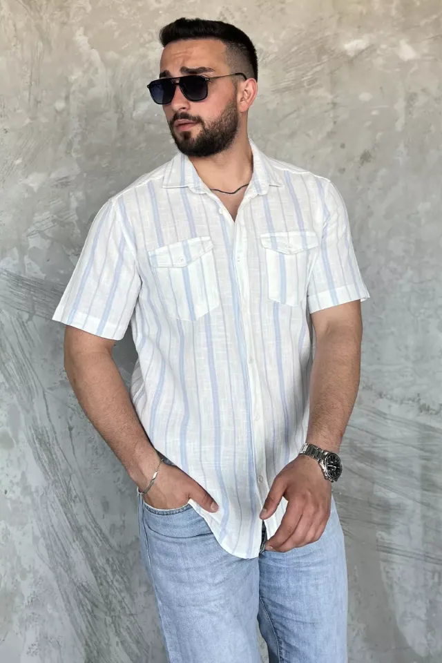 قميص رجالي كاجوال بأكمام قصيرة سادة