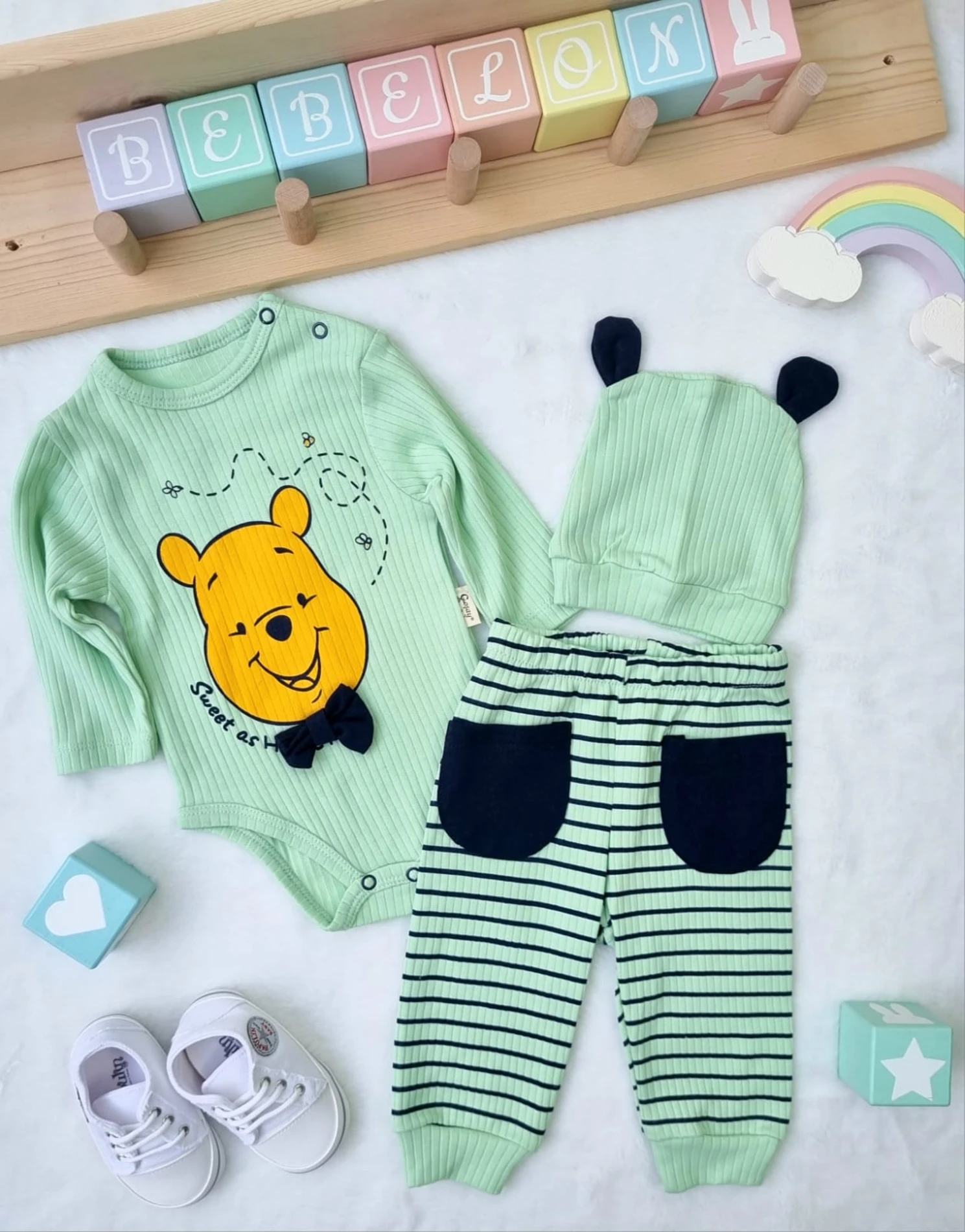 طقم من قطعتين، يتكون من أفرول بحمالات قابلة للتعديل، مصنوع من قماش الدنيم الناعم المحبوك الذي يضمن الراحة والمرونة طوال اليوم. مثالي لأيام الربيع والصيف، ويمنح صغيرك إطلالة أنيقة. قابل للغسل في الغسالة على درجة حرارة 30 مئوية.