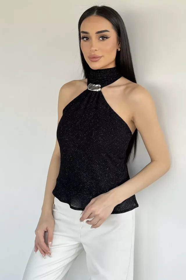 بلوزة تريكو بستايل لف وأكمام منفوخة. قصة مريحة تناسب الإطلالات اليومية وحركة الجسم الطبيعية.