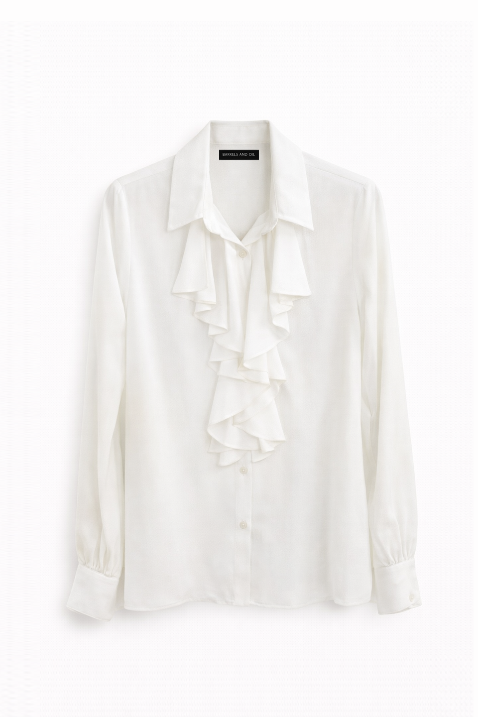 قميص نسائي سادة بأكمام واسعة وتفاصيل مطوية أنيقة يوفر مظهرًا عصريًا ومريحًا مثاليًا للارتداء اليومي.