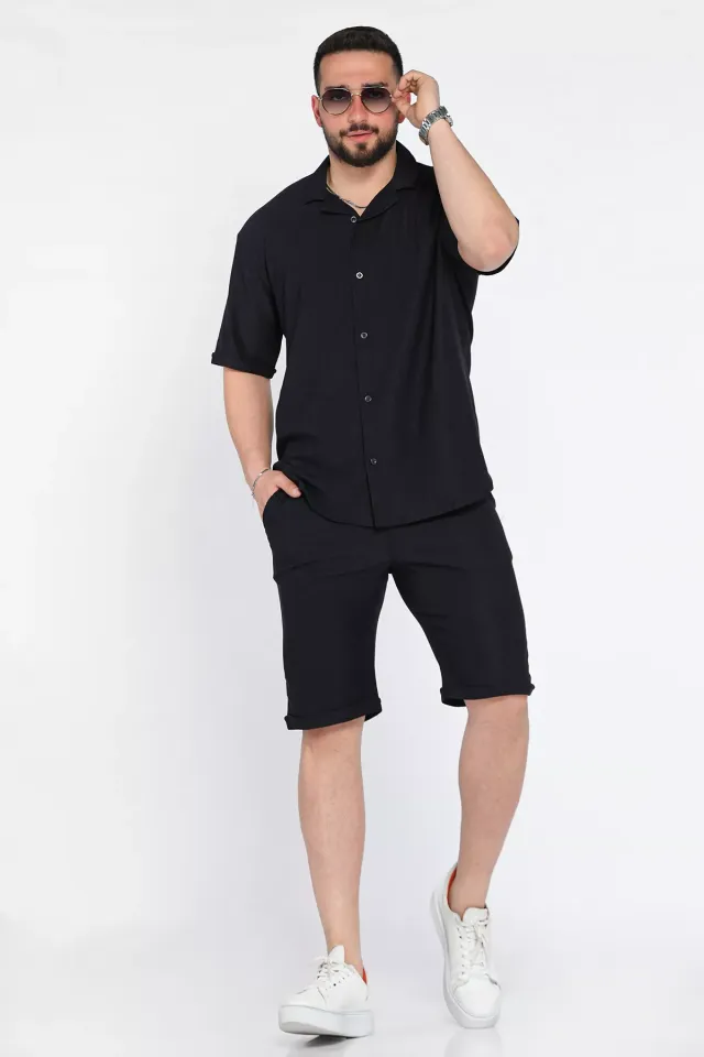 طقم شورت رجالي بياقة قميص سادة - Beyond Store