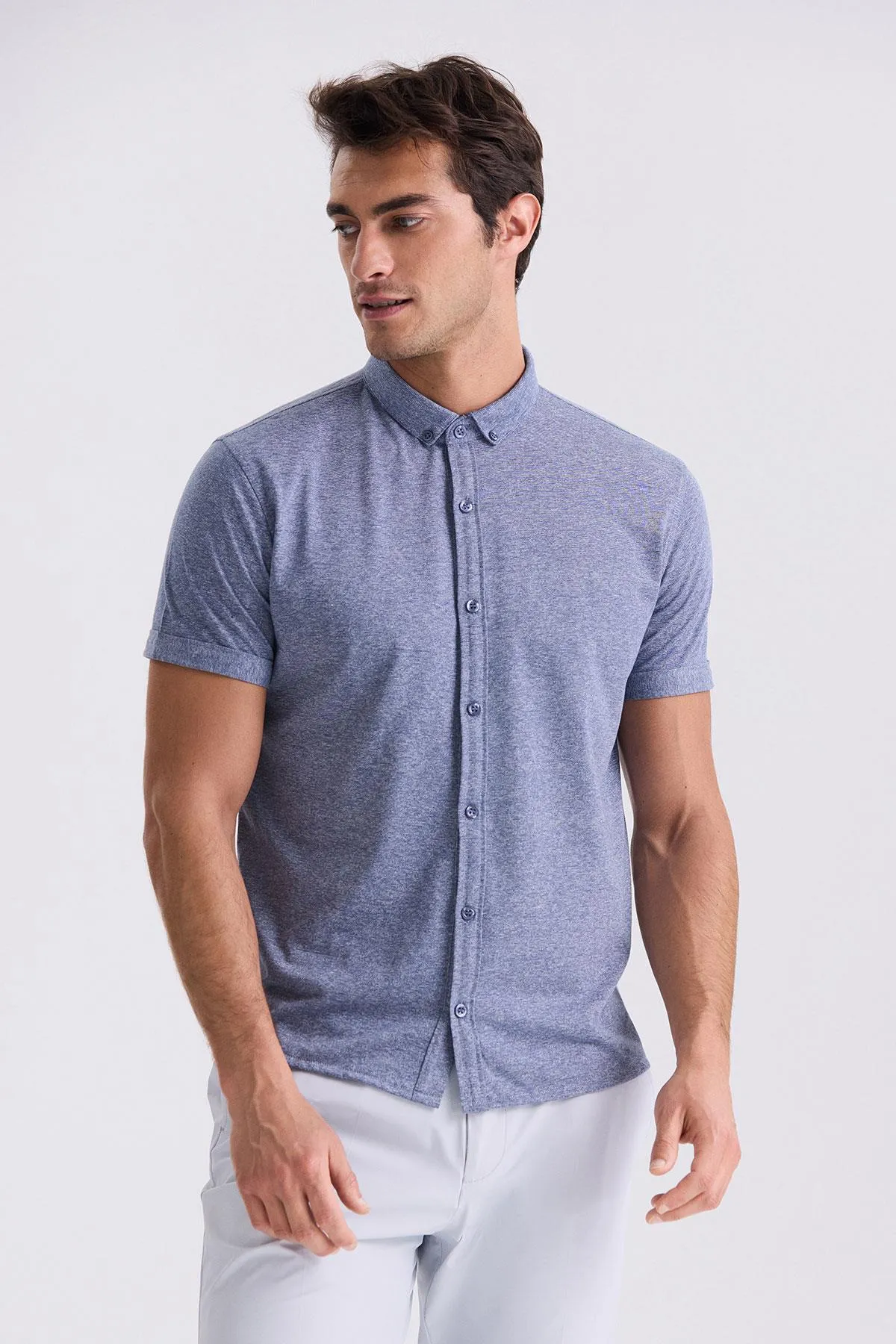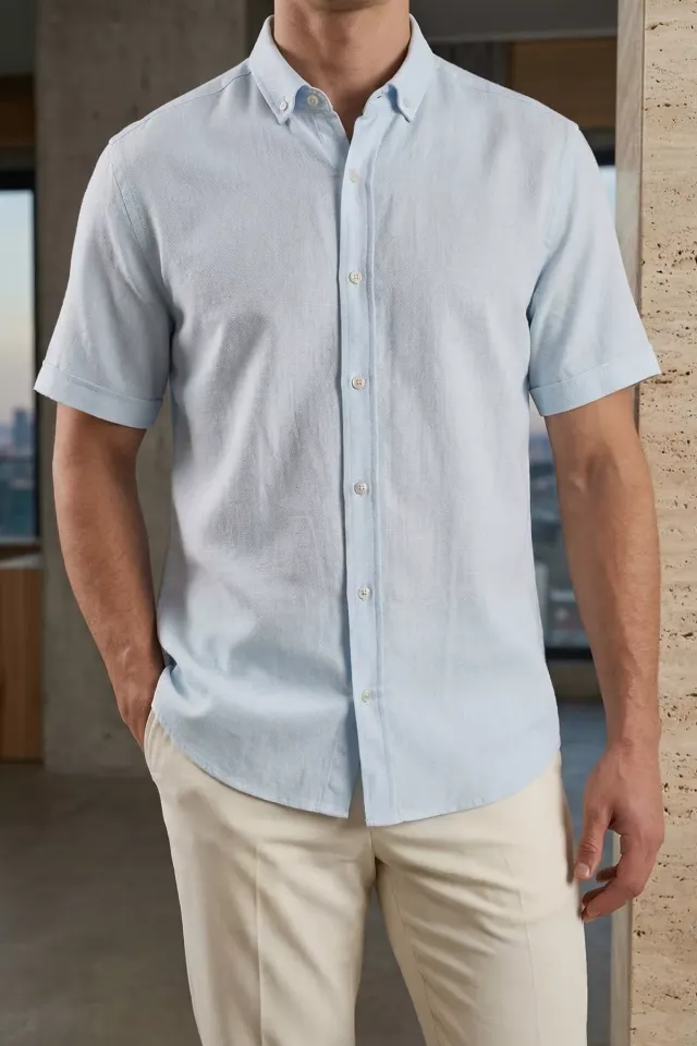 قميص مخطط بأكمام قصيرة وأزرار للرجال