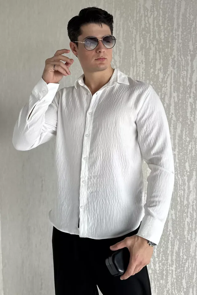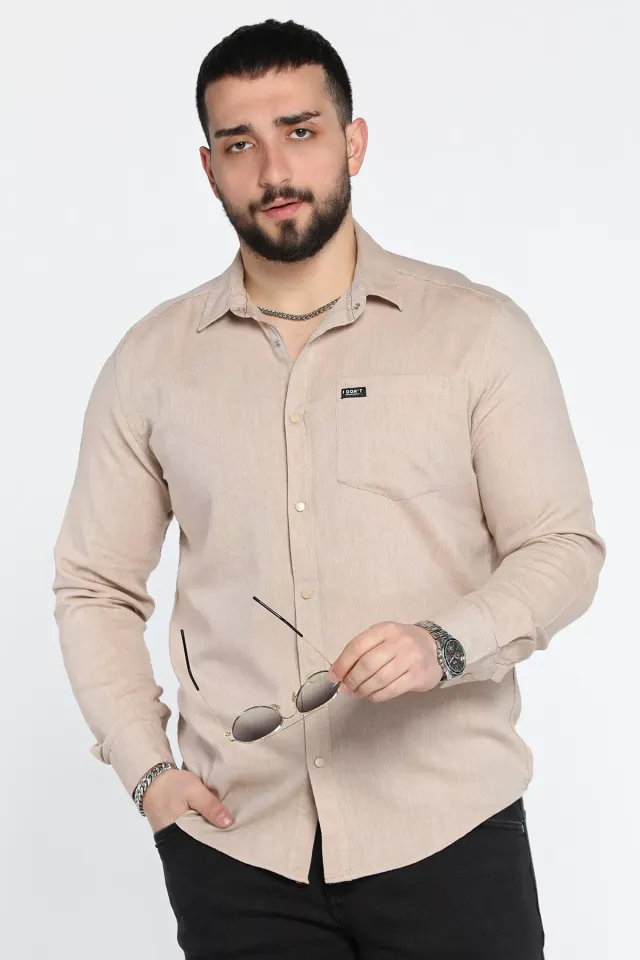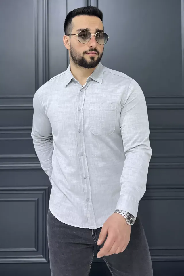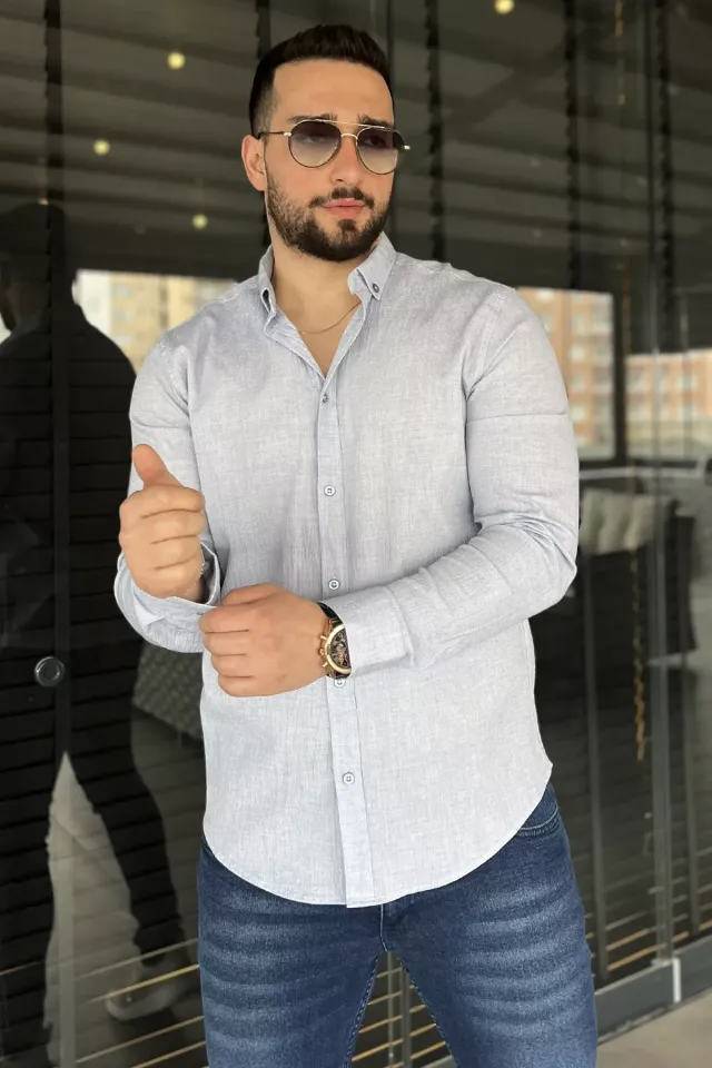 قميص رجالي سادة بأكمام طويلة، بياقة قميص وأزرار للإغلاق، مصنوع من 97% قطن و3% لايكرا، ناعم، قابل للتهوية، ومرن قليلاً. مثالي للمناسبات الرسمية وغير الرسمية. قابل للغسل في الغسالة على درجة حرارة 30 درجة مئوية.