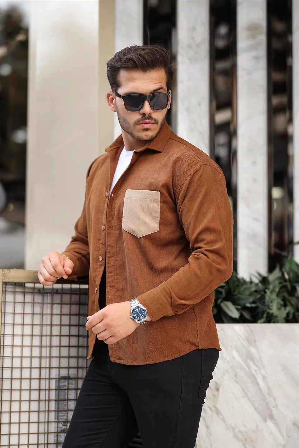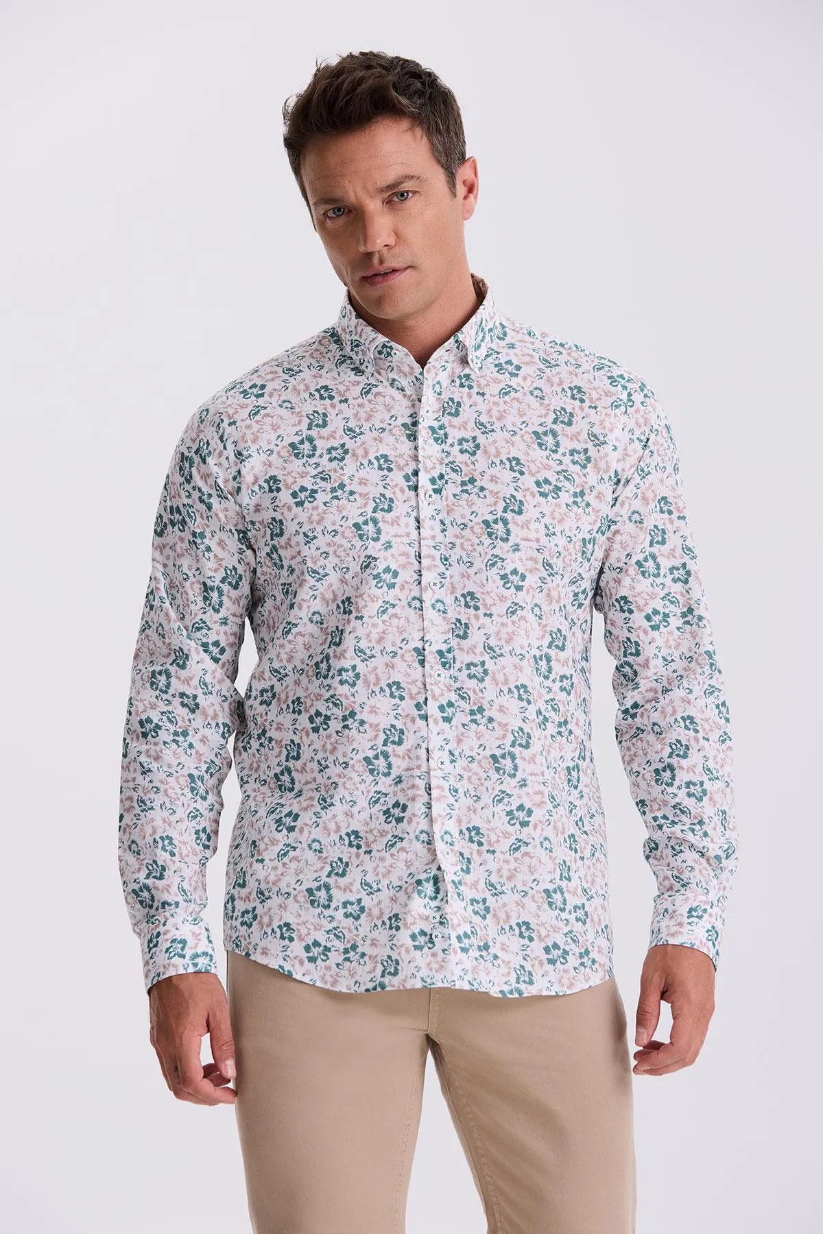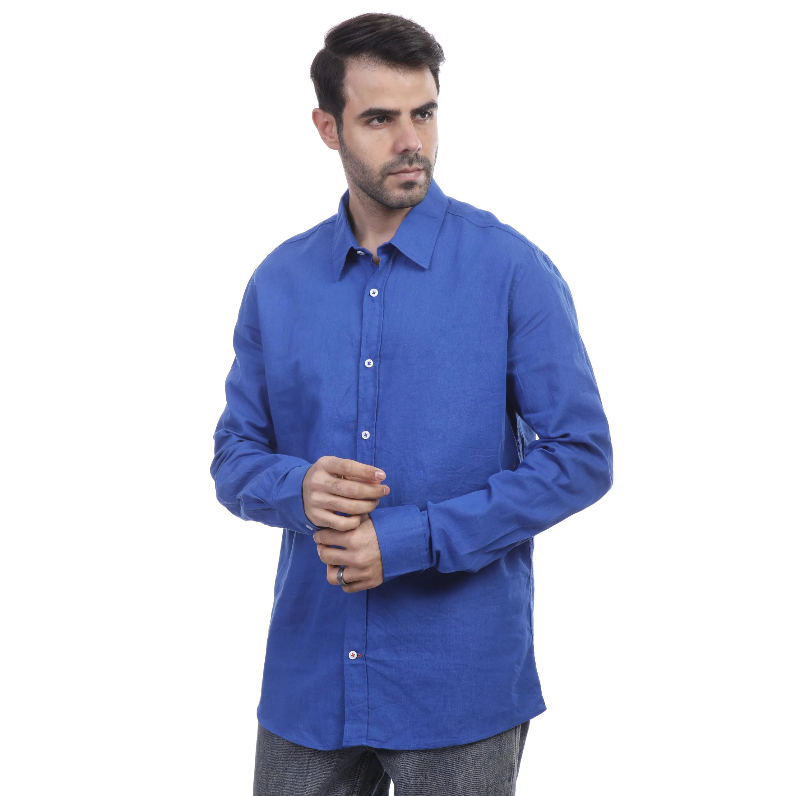 قميص رجالي قطني بأكمام طويلة وياقة قميص وأزرار - Beyond Store
