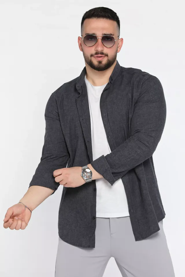 قميص رجالي قطني بأكمام طويلة وياقة قميص وأزرار