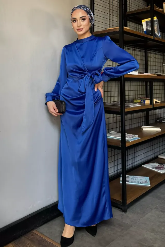 فستان ماكسي بياقة قائمة وتفصيلة نجمة لامعة عند الرقبة. مثالي لتنسيقات أنيقة في مناسبات العيد للنساء.