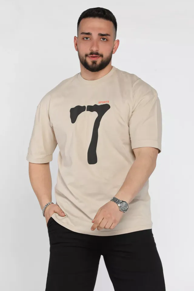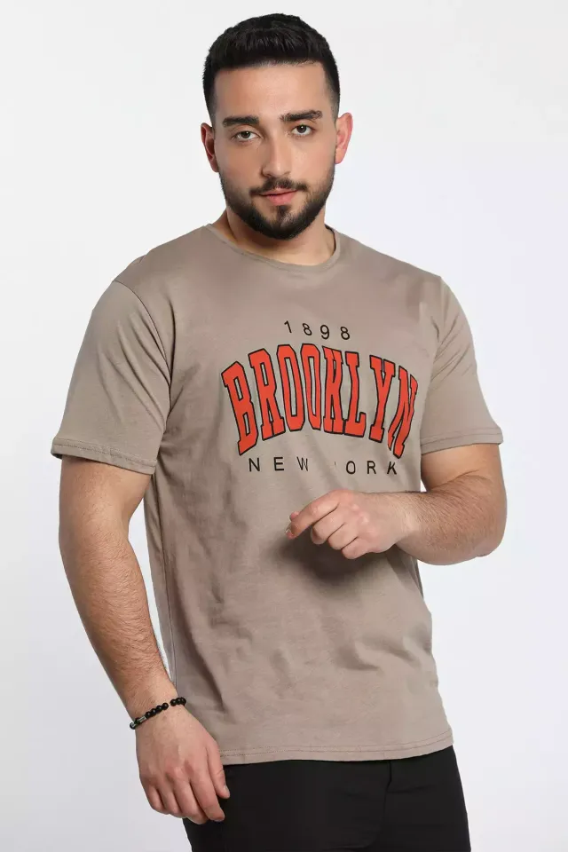 تي شيرت رجالي مطبوع بأكمام قصيرة وياقة دائرية وأكمام عادية - Beyond Store