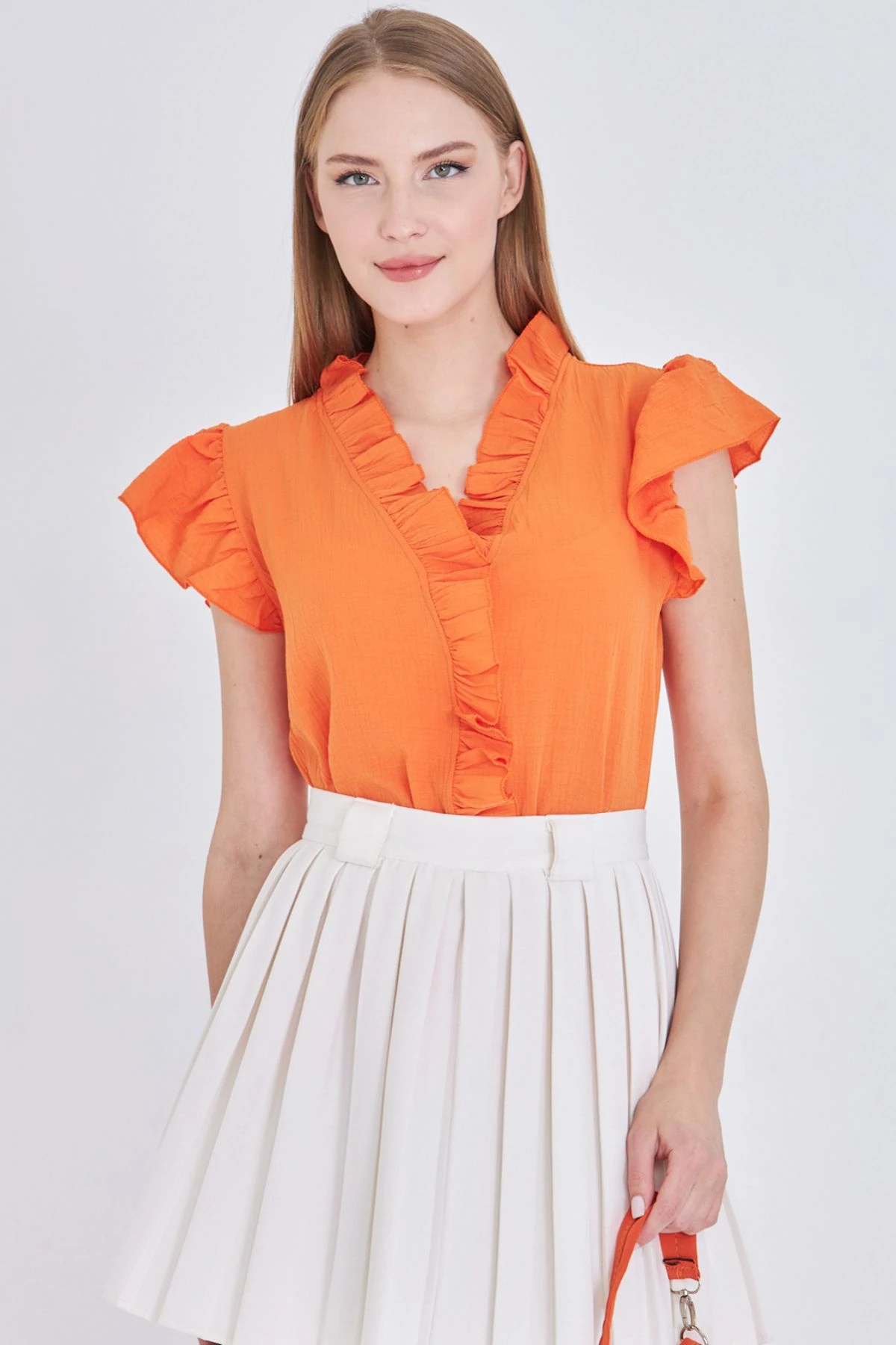 بلوزة نسائية بكتف مكشوف من الفيسكوز وياقة دائرية وتفصيل زر - Beyond Store
