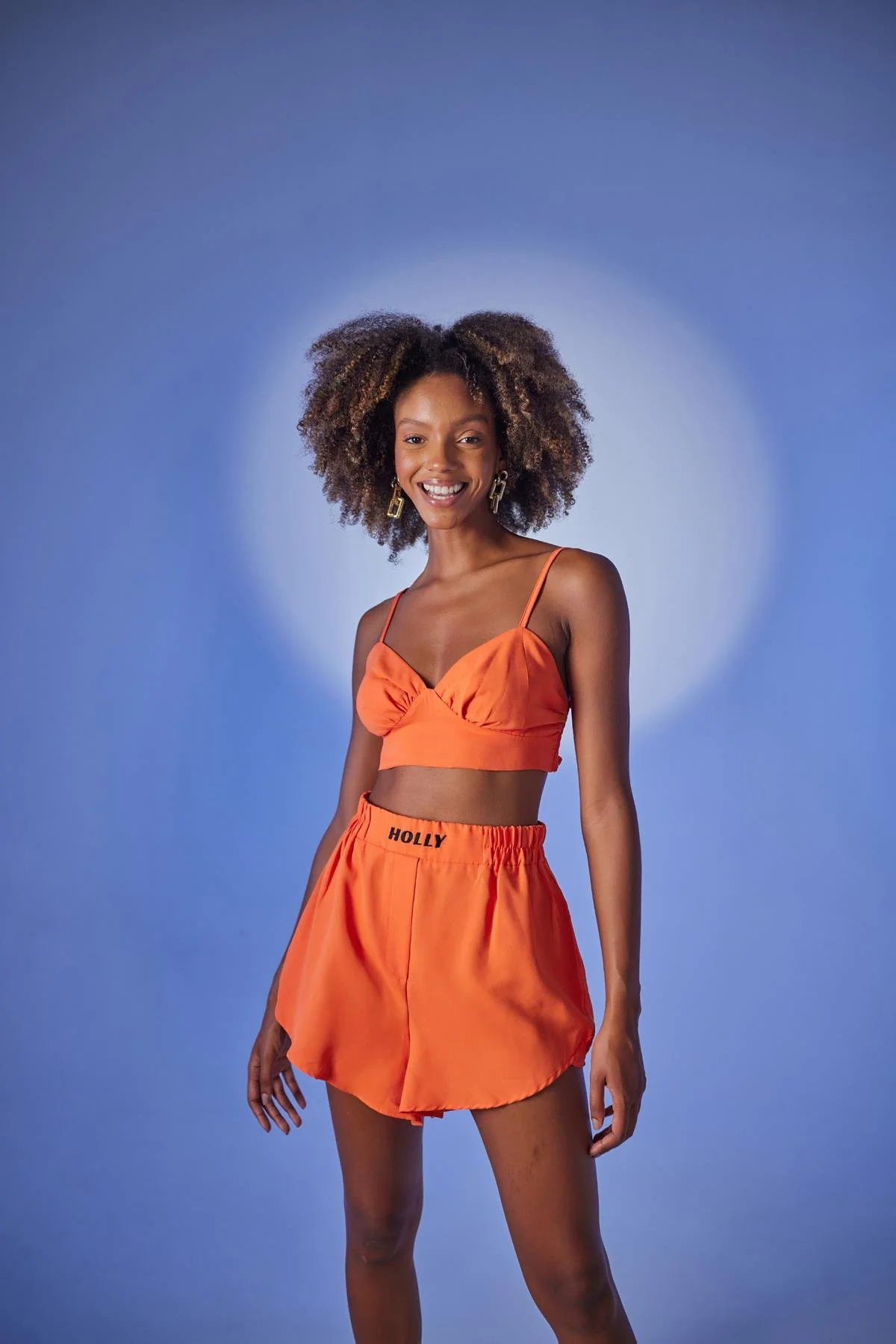 توب بستييه قصير بحمالات عريضة وياقة U مع خامة مطاطية. تصميم ضيق مثالي لتنسيقات صيفية يومية خفيفة.