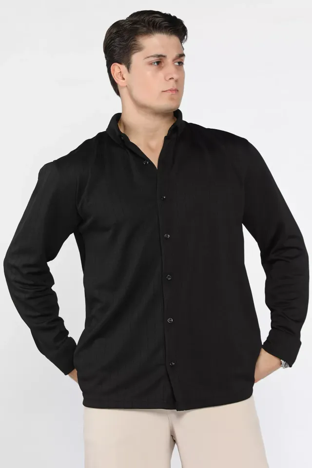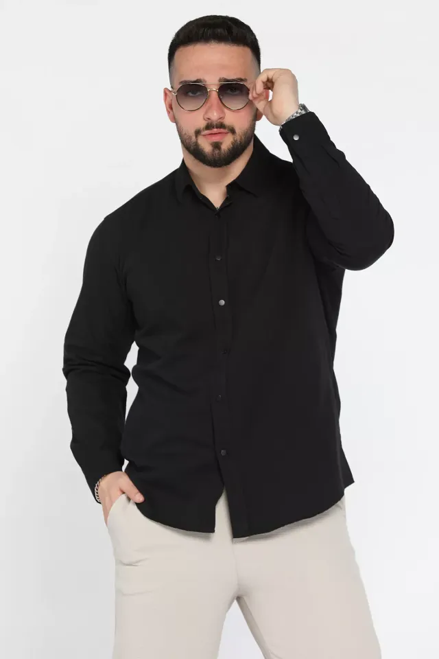 قميص رجالي سادة بأكمام طويلة وياقة كلاسيكية وجيوب مزدوجة، مصنوع من 98% قطن و2% بوليستر لراحة ومتانة فائقة. مثالي للمناسبات غير الرسمية وشبه الرسمية. قابل للغسل في الغسالة على درجة حرارة 30 درجة مئوية.