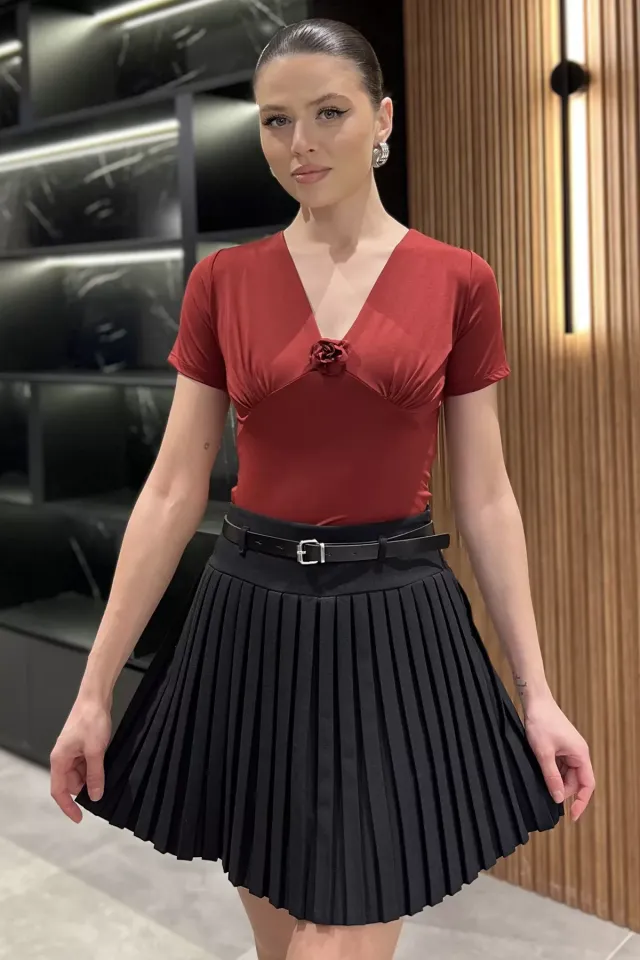 بلوزة بأكمام طويلة وياقة دائرية مع فتحة إبهام. قطعة مريحة بقصة ضيقة تناسب التنقل والتنسيقات الخفيفة.