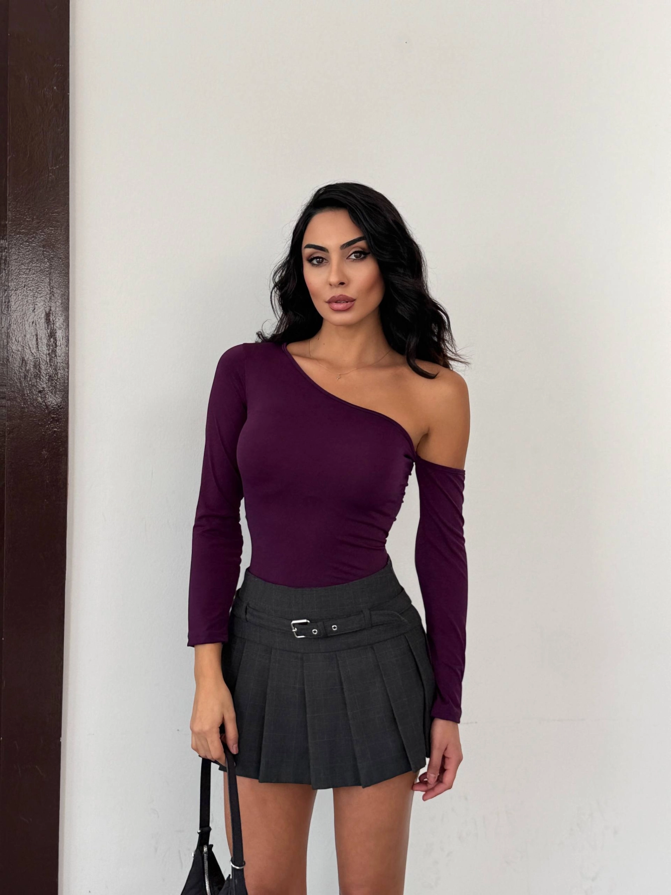 بلوزة بكم قصير وياقة مربعة من قماش مبروم. خيار عملي لإطلالات صيفية مريحة.