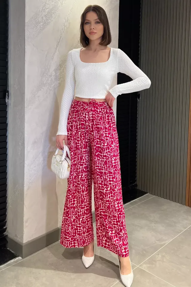 بنطال نسائي بقصة حافة جزرية مغسولة بخصر مطاطي وجيبين. تصميم مريح ولمسة باهتة لإطلالاتك اليومية.