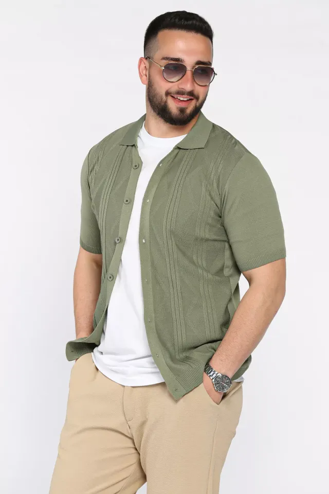 قميص رجالي كاجوال مخطط بأكمام قصيرة وأزرار، مصنوع من قماش كريب 100% لشعور خفيف الوزن ومريح. مثالي للأجواء الدافئة والمناسبات غير الرسمية. قابل للغسل في الغسالة على درجة حرارة 30 درجة مئوية.