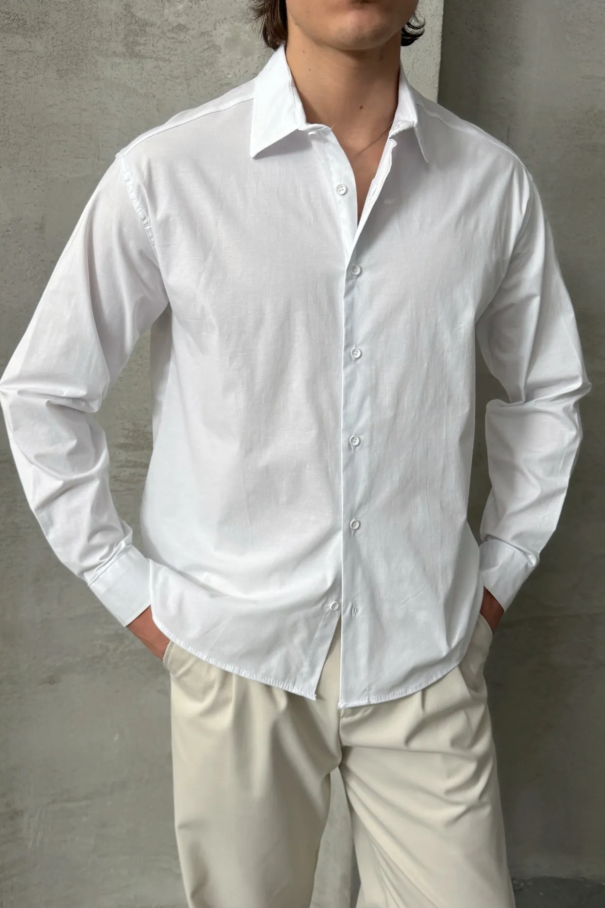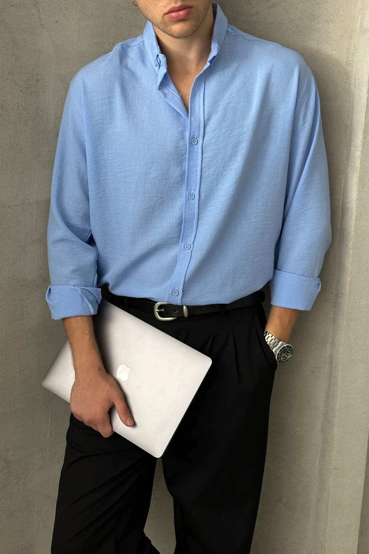 قميص رجالي رسمي سادة بأكمام طويلة وأزرار، مصنوع من ٧٠٪ قطن و٣٠٪ بوليستر لراحة ومتانة وسهولة في العناية. مثالي للمكتب والمناسبات الرسمية. قابل للغسل في الغسالة على درجة حرارة ٣٠ درجة مئوية.