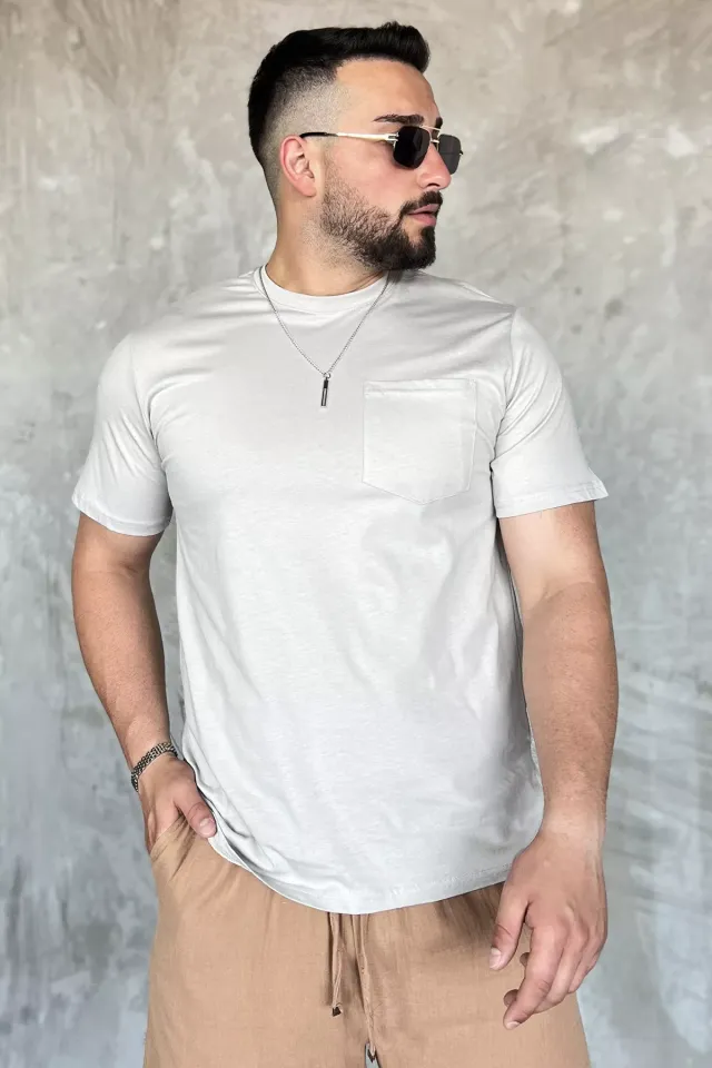 تيشيرت رجالي سادة بياقة دائرية بستايل كاجوال