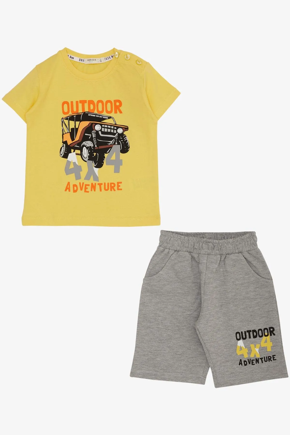 طقم كاجوال مريح للأولاد يتميز بتيشيرت بياقة دائرية وتصميم مطبوع مرح، مصنوع من قطن ناعم 100% لراحة فائقة وتهوية ممتازة. مع بنطال عملي مصنوع من مزيج متين من 66% قطن و34% بوليستر لمرونة الاستخدام مناسب للارتداء اليومي. مثالي للطقس المعتدل والمغامرات اليومية. قابل للغسل في الغسالة على درجة حرارة 30 درجة مئوية.
