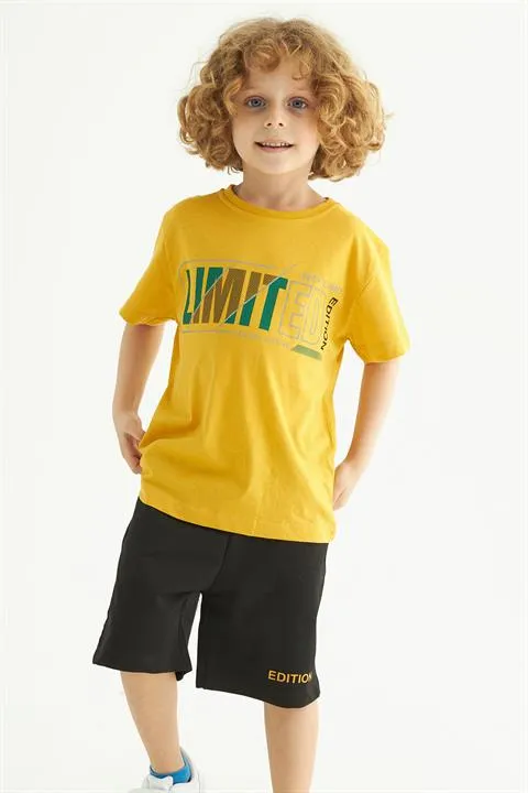 طقم مكون من قطعتين من تي شيرت مطبوع وشورت بطول الركبة للأولاد - Beyond Store