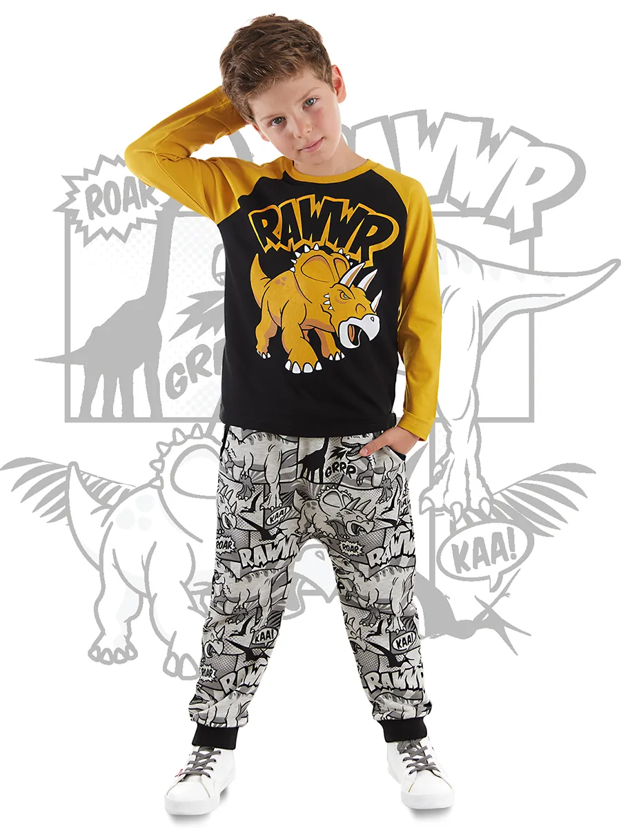 طقم مكون من قطعتين من تي شيرت مطبوع وشورت بطول الركبة للأولاد