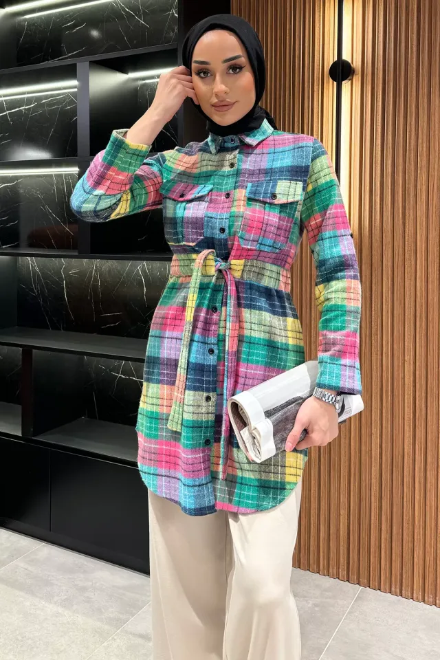تونيك أنيق بأكمام طويلة ورقبة دائرية سادة مزين بأزرار، تصميم محتشم يوفر راحة وأسلوب متنوع يناسب الإطلالات اليومية أو اللقاءات الكاجوال.
