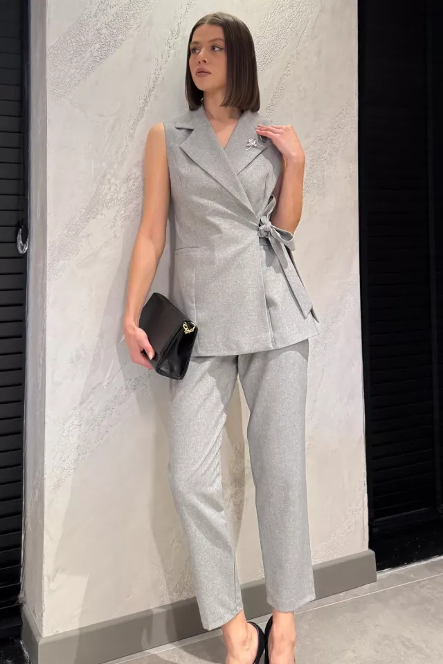 طقم كيمونو نسائي منقوش مع بنطلون واسع الساقين. مصنوع من قماش ناعم يسمح بمرور الهواء، مما يوفر الراحة والأناقة. مثالي للربيع والصيف.