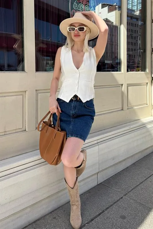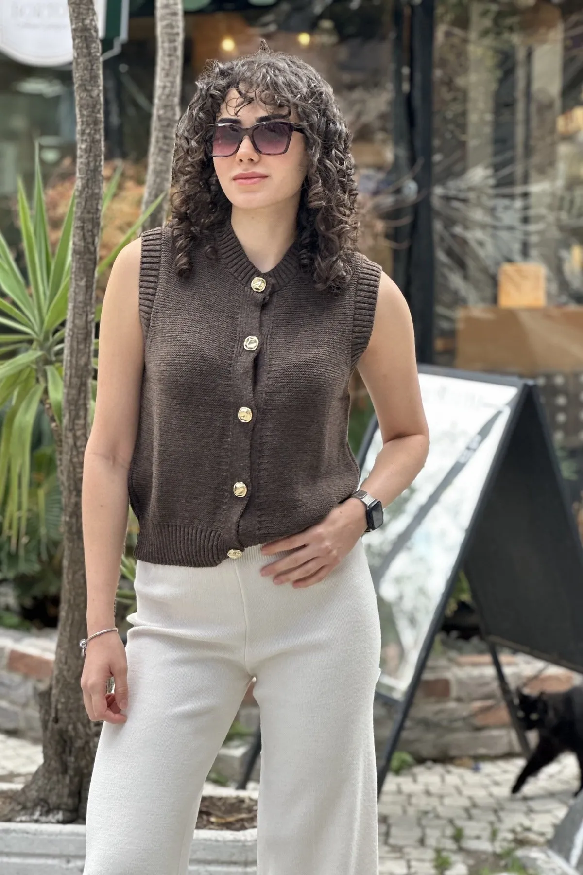 فيست تريكو بياقة بيتر بان ونقشة موج وتفصيل كشكش مع أزرار على شكل قلب بدون أكمام لإطلالة صيفية كيوت
