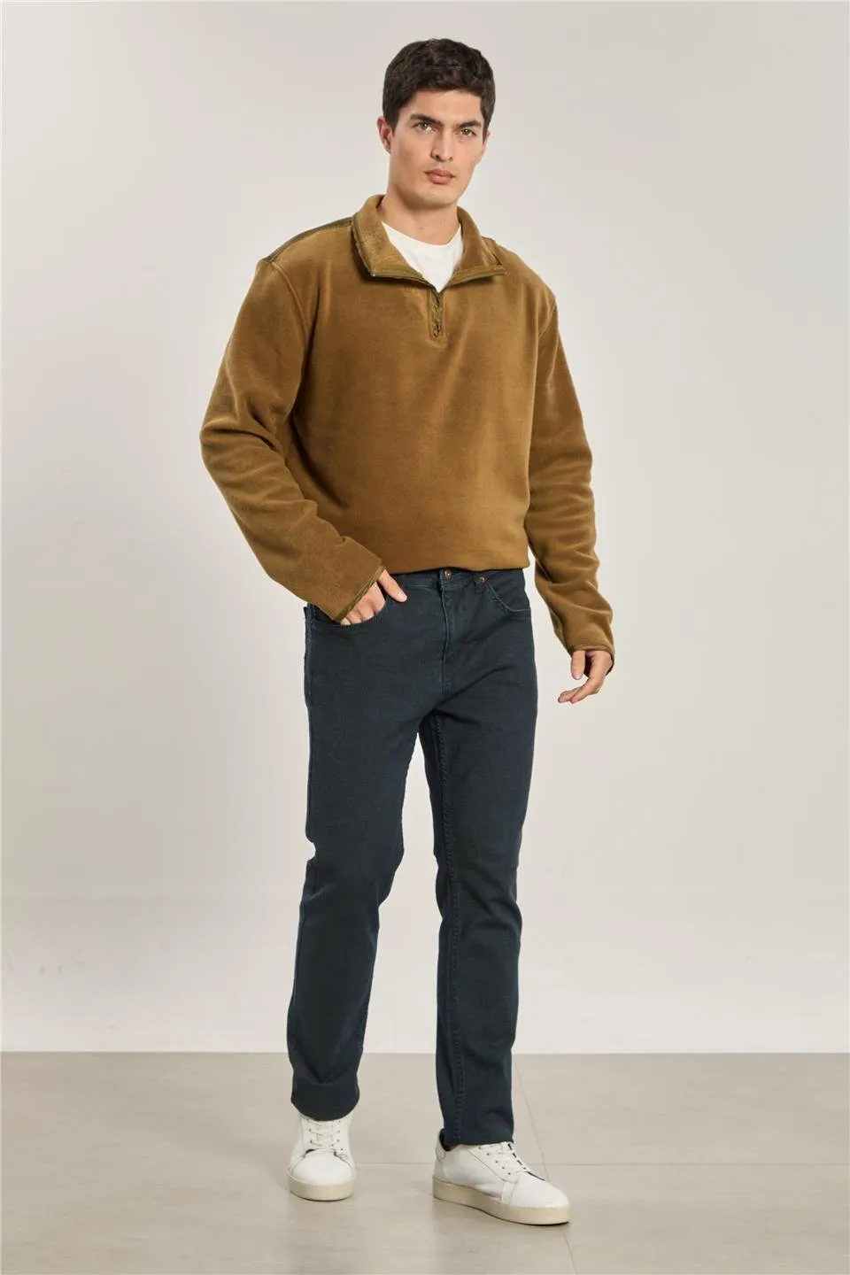 بنطلون رجالي كاجوال بقصّة مستقيمة وسحاب، مصنوع من 60% بوليستر و40% قطن لراحة وتهوية دائمة. قابل للغسل على درجة حرارة 40 درجة مئوية، مثالي للارتداء اليومي.