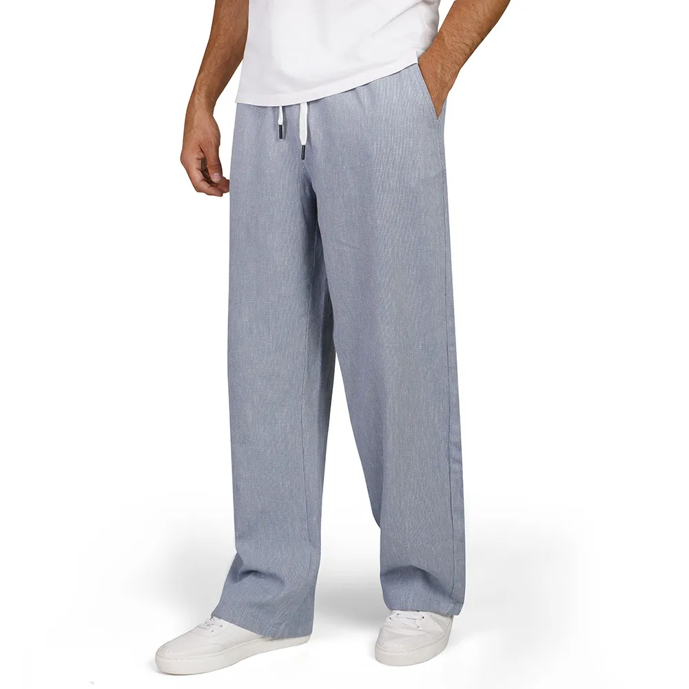 بنطلون رجالي كاجوال بقصّة مستقيمة وسحاب، مصنوع من 60% بوليستر و40% قطن لراحة وتهوية دائمة. قابل للغسل على درجة حرارة 40 درجة مئوية، مثالي للارتداء اليومي.