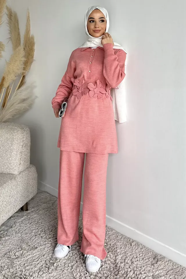 بلوزة بدون أكمام بياقة مطوية مع بنطال واسع بحزام. طقم أنيق من قطعتين يمنحكِ إطلالة عصرية وأنيقة، سواءً للمناسبات الرسمية أو الكاجوال.