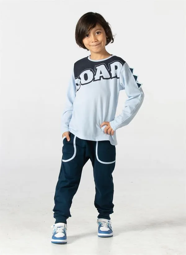 طقم مطبوع بياقة دائرية وأكمام قصيرة للأولاد - Beyond Store