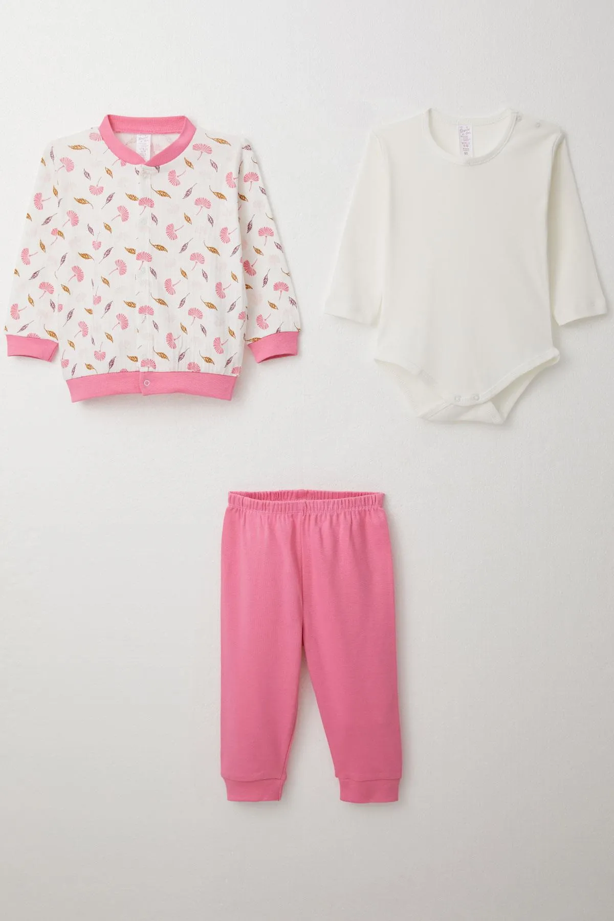 طقم مكون من قطعتين مطبوع للبنات مصنوع من 100٪ قطن بياقة دائرية وأكمام قصيرة وأزرار ضغط، سهل الارتداء ومريح. يُغسل على 30 درجة مئوية للحفاظ على النعومة.