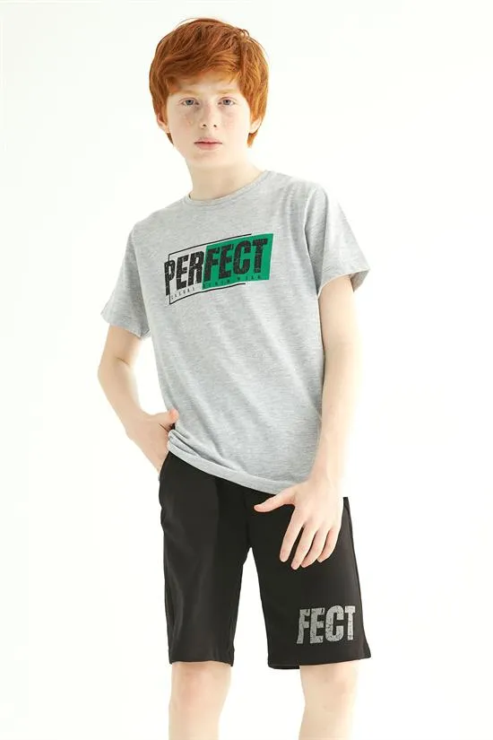 طقم شورت جينز ولادي مطبوع بياقة دائرية و خصر عادي - Beyond Store