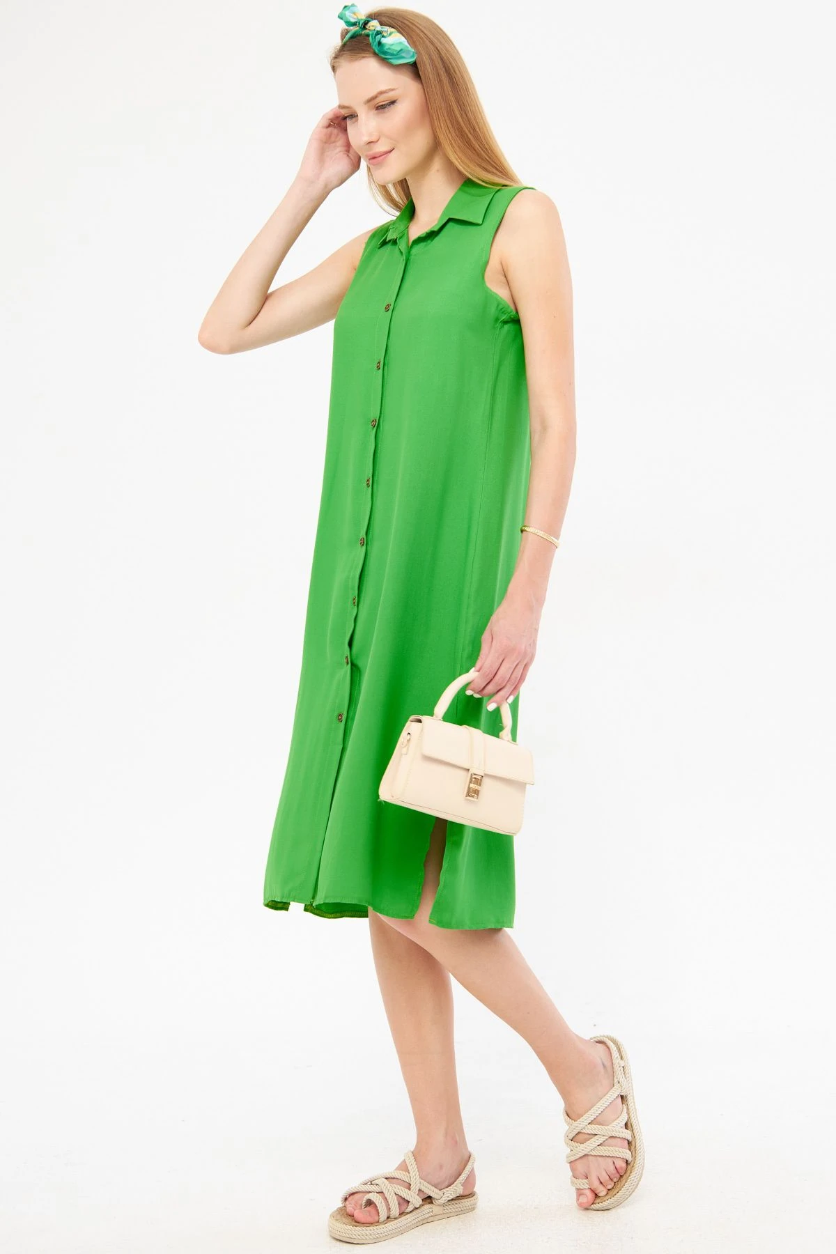 فستان كلوش بياقة مربعة وأكمام بالون مزين بتفاصيل حجر لامع. تصميم أنيق يناسب أيام الصيف والإطلالات اليومية للنساء.